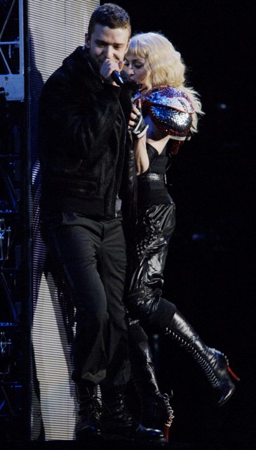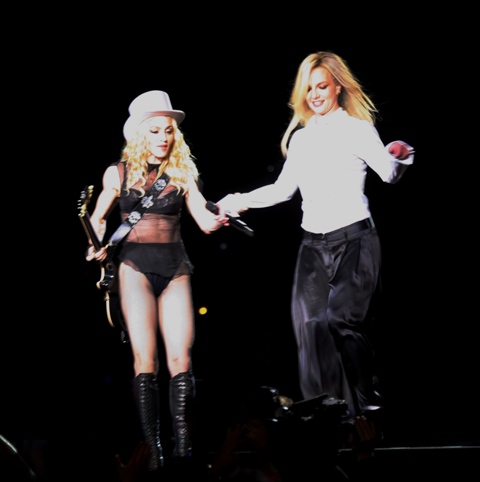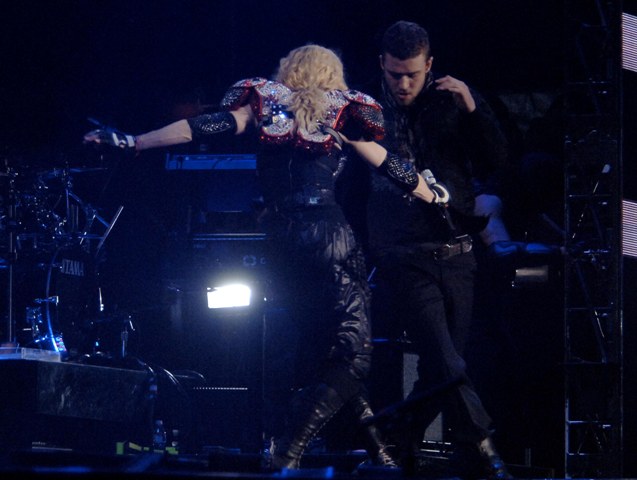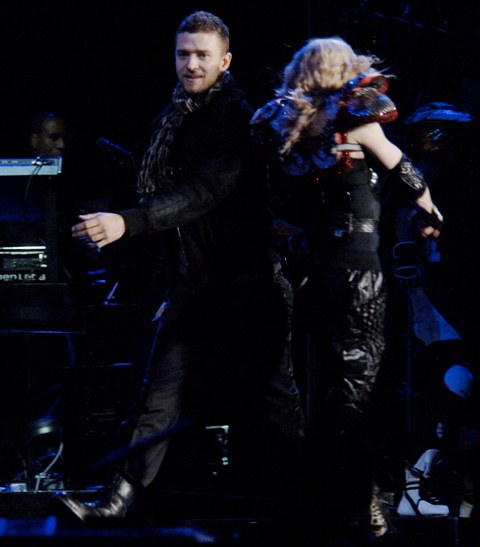 Britney came out before he did. As expected, during Human Nature. Wasn’t a real performance – some grooving, sang a few bars towards the end – but according to everyone I’ve spoken with, her presence was waaaay more hype. It’s Britney, bitch…which is what she said, but only after Madonna told the crowd: She’s not your bitch!