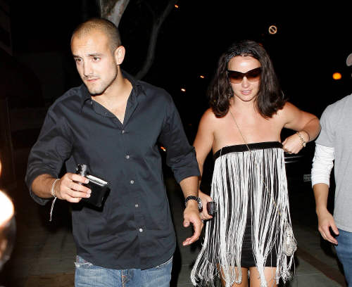 Here she is on some kind of date Saturday night – another night of bar hopping in LA, fresh off her trip to Vegas during which her bodyguard was involved in an altercation and her party was unceremoniously tossed from the Wynn. Early buzz on Friday seemed to suggest a reconciliation attempt with Lynne Spears, also on her way to Vegas. Needless to say, that never happened. Instead, Britney headed back for Hollywood and back on the circuit for more debauchery. Details coming…
