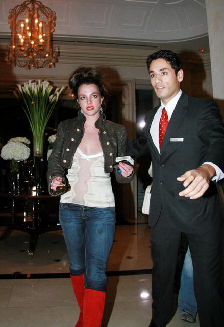 He left, she followed 20 minutes later, headed to the Four Seasons. As you can see, Britney is modeling a new pair of red boots and testing them out for the cameras. Maybe she needed a little pick-me-up. Word is her and Adnan are on the rocks – she is reportedly preoccupied by this. Just in case you’ve forgotten though, her kids are still with KFed and she’s been stripped of visitation until January 14th. Sounds like someone needs to remind her.