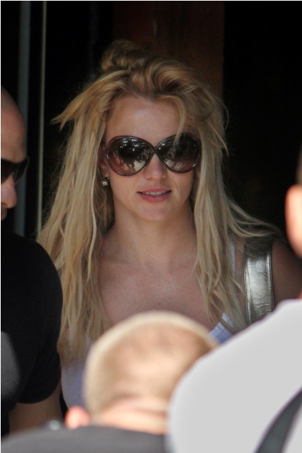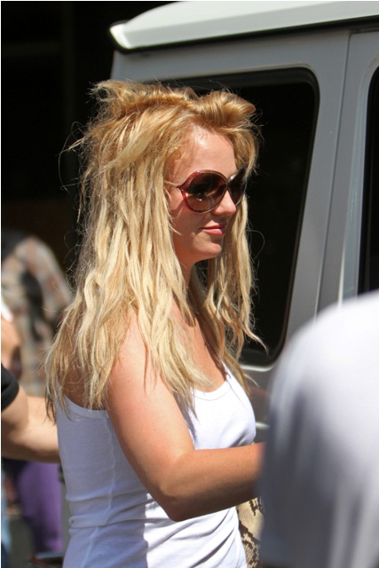 She went shopping today. The arrival outfit was ... ok. Almost decent. For HER. And then, as she’s prone to doing, halfway through the spree she decided to change. Into ass pants and a white tank, with that nasty weave flying all over the place. If the conservatorship was ever decided based on her wardrobe, Daddy Spears will be in power a long, long time.