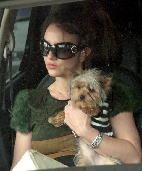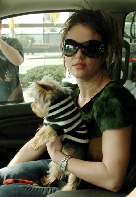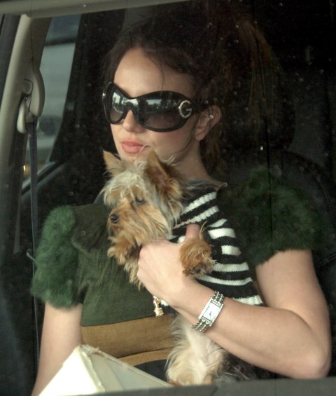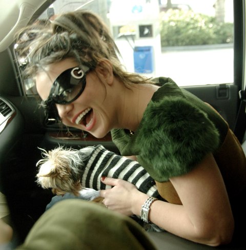 Britney went out with her assistant for a drive yesterday carrying her dog in her lap and smoking a ciggie at a gas station. Meanwhile every weekly has her on the cover – OK! Magazine spent a reported $1 million on a series of photos taken at Britney’s request a few weeks ago with the boys.