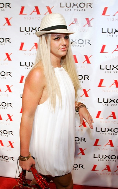 Britney was paid a reported $100,000 to host the Vegas opening of LAX on Friday night but for a while there it looked like she was about to bail. In the end, she actually did show…only over 2 hours late. She also initially refused to pose on the carpet which is why she was hired in the first place. Apparently the owner had to force her back out where she stood uncomfortably for a few seconds before dashing inside the club, only to be joined by none other than Criss Angel with whom she spent the rest of the evening club hopping around town and supposedly canoodling…with a large ring on her left hand, prompting yet another round of speculation about Marriage #3.