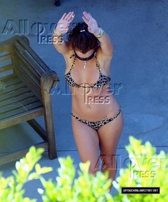 Which might explain why she’s dancing in a bikini in her yard. Caught by the paps grooving away with a ciggie in hand – from this angle, her body looks pretty good. And before you huff and puff on your email and go there, save your energy. Because I’m not going there.