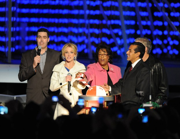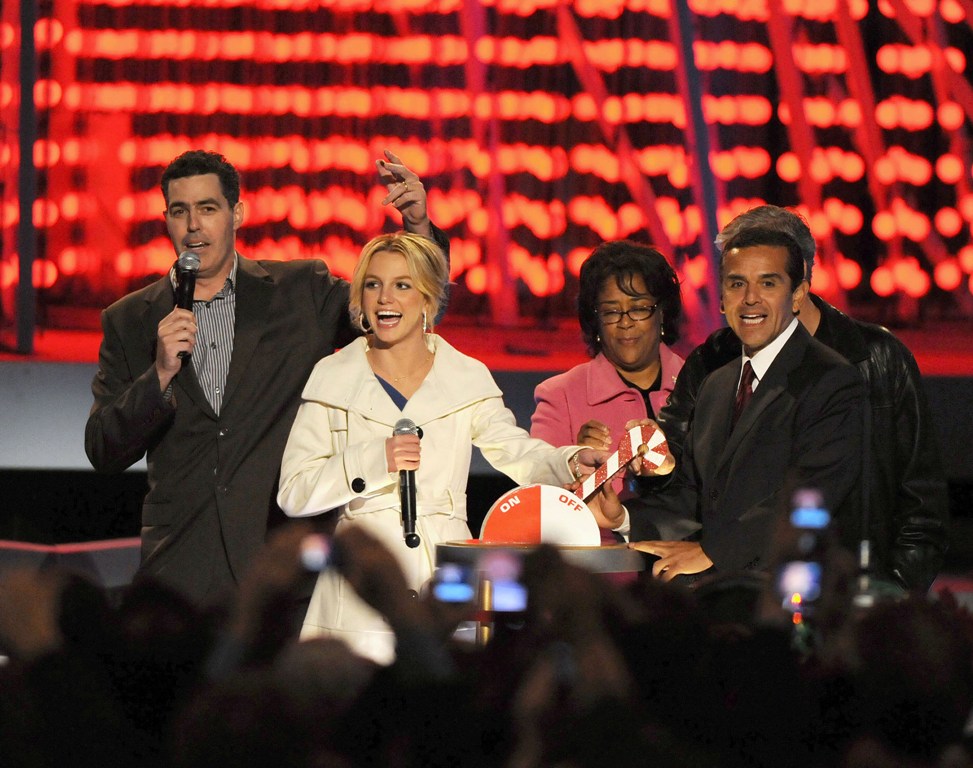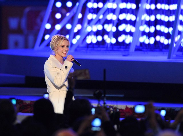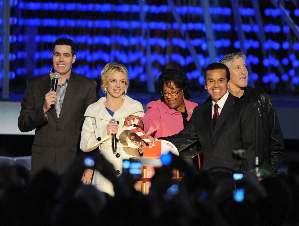 After a whirlwind week, Britney is back in LA and was the not so surprise guest at the Light of Angels Holiday Tree lighting ceremony yesterday. As you can see, she put on her fake Disney smile and guffawed when she thought she was supposed to. I think I hate that fake guffaw more than that fake smile.