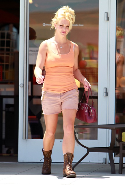 Here’s Chicken Fried Britney hitting up a Crate & Barrel yesterday and while you think it’s (relatively) normal from the front, it turns out around and that sh-t gets frightening. I mean truly, truly disturbing. The weave abuse, it really has to stop. All of them. Lindsay Lohan is apparently not allowed to keep her extensions in jail. Wonder if hers looks like this too. These girls, they are literally pulling their hair out.
