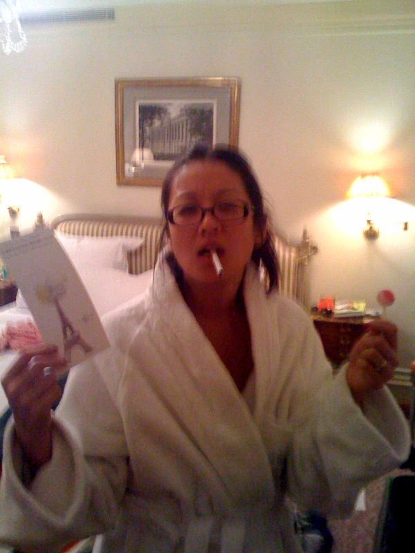 On our last night in London we were glued to MTV UK. We discovered that Duana knows Britney’s birthday off by heart in less than half a second, Michelle can deliver a killer imitation of Britney’s Bend and Snap complete with hair toss too, and I rounded out the Britney trifecta with my very own Chinese Fried Chicken. Note the hair in a messy bun, the ciggie and the lollipop and the low classy oozing out of my bathrobe.