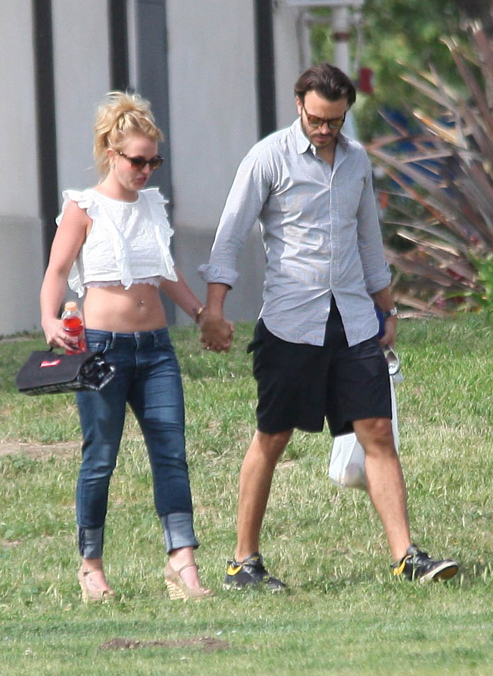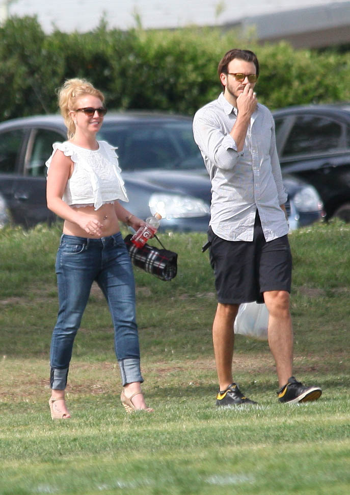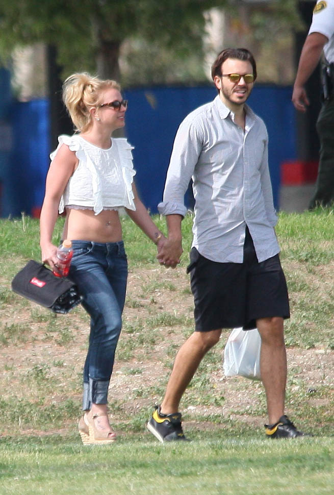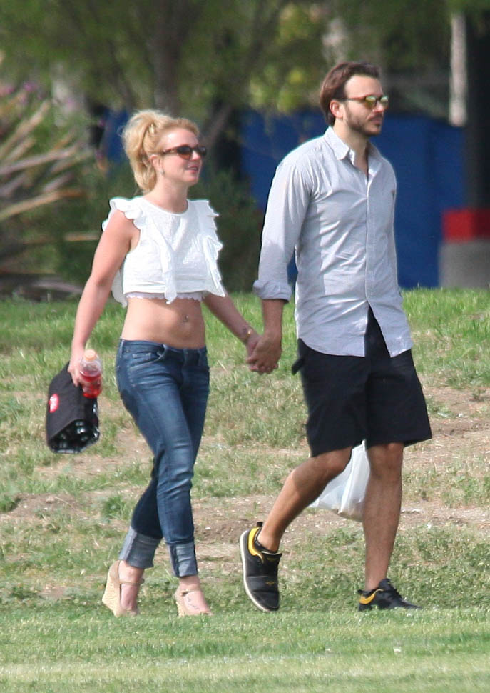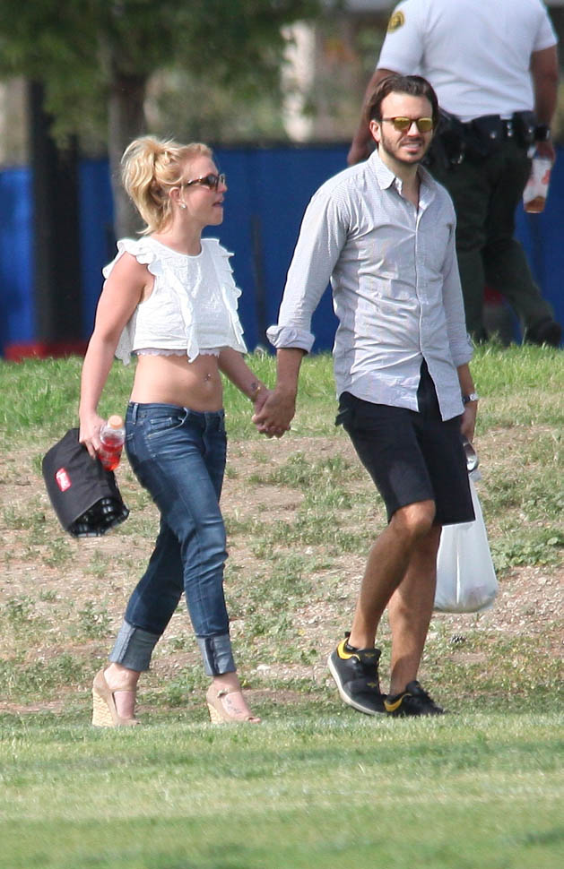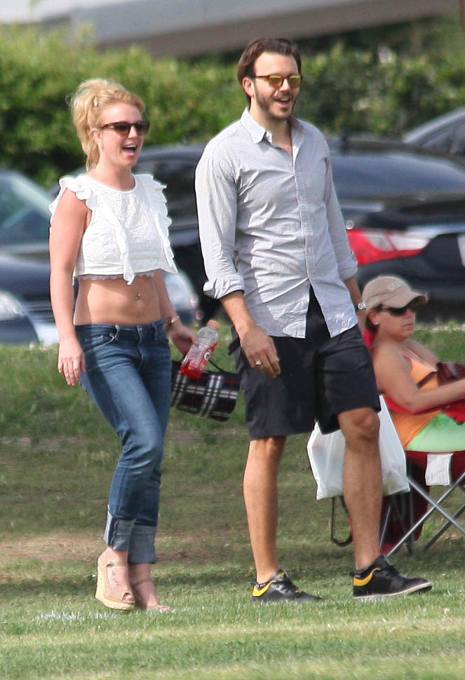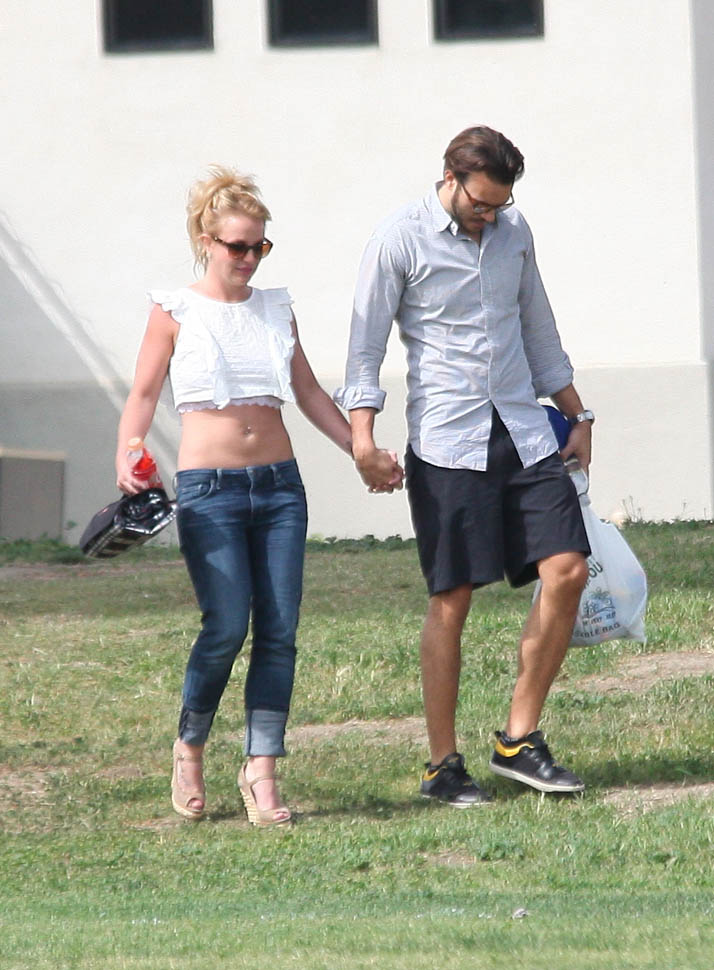 Britney Spears and her boyfriend, Charlie Ebersol, stepped out hand-in-hand yesterday for her son’s soccer game. They started dating in the fall. So we’re about 6 months in now. And she seems as happy, healthy, and relaxed as we’ve ever seen her since having kids.