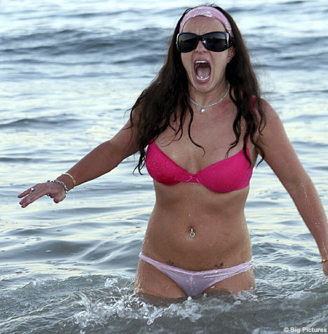 Problem with Britney, one of them anyway, is that she’s full on for a couple of weeks or so and then always loses interest. Perhaps it’s a consequence of the child slave labour her parents imposed or, no excuses, perhaps she’s simply a degenerate skank who can’t be bothered to hold off the cheeto long enough to actually do some work. Whatever it is, given that she’s supposedly managing herself these days, her record company is said to be in a mild panic. Especially since my sources report she’s been walking around pining for a baby girl of late. Will keep you posted.
