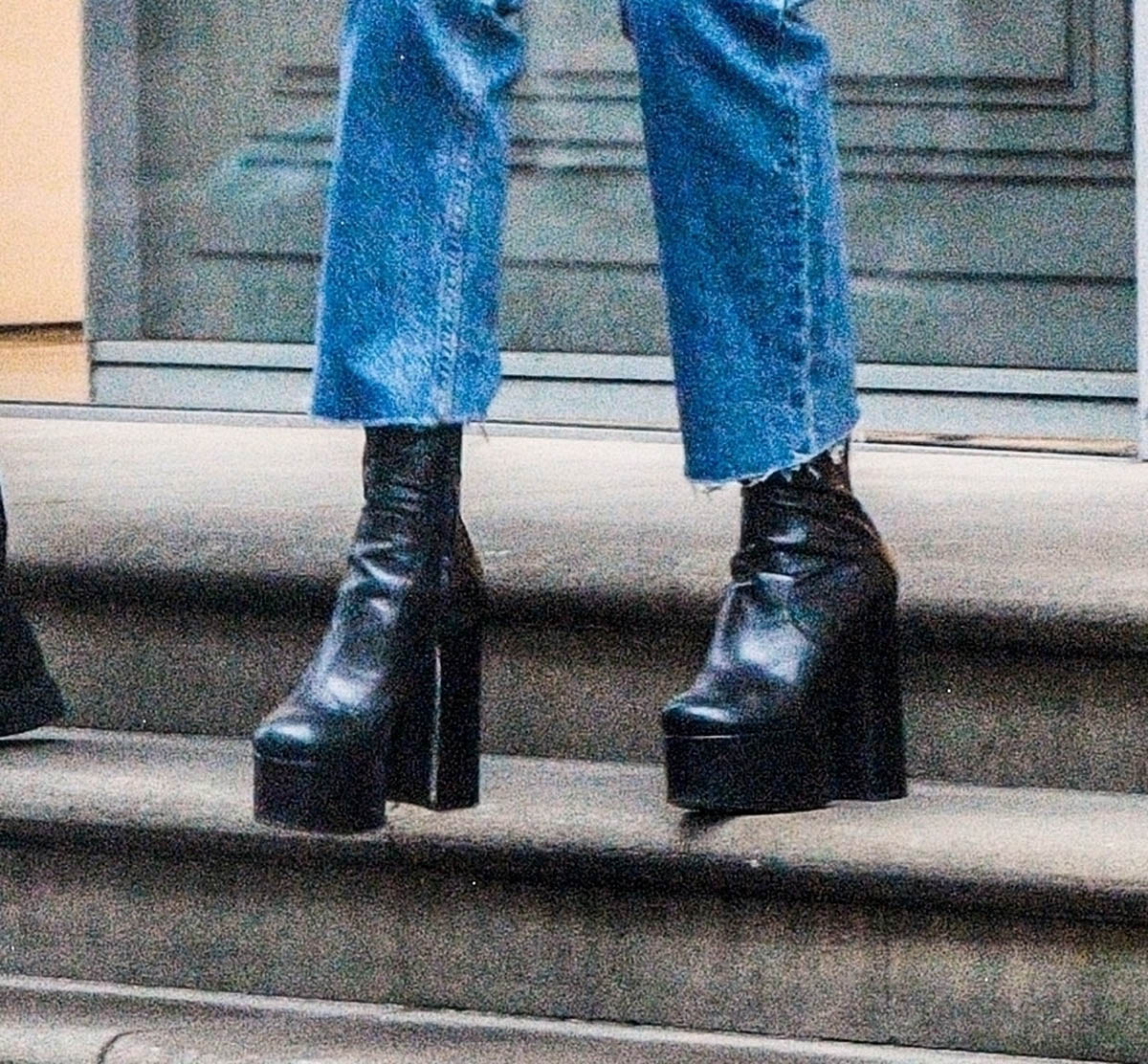 Can we talk about her boots though? I f-cking love them. I mean, I feel like it’s a bit early for them in August, for me personally, but if we were in non-COVID times and thinking of shoe options for Fall 2020, I’d be investing in a pair of these throwbacks. They go with everything: jeans, as she’s showing here, but also any dress, long or short. And culottes! I’d rock these with culottes for sure. And even a sweatshirt dress that stops high on the thigh, with tights. On the search now.