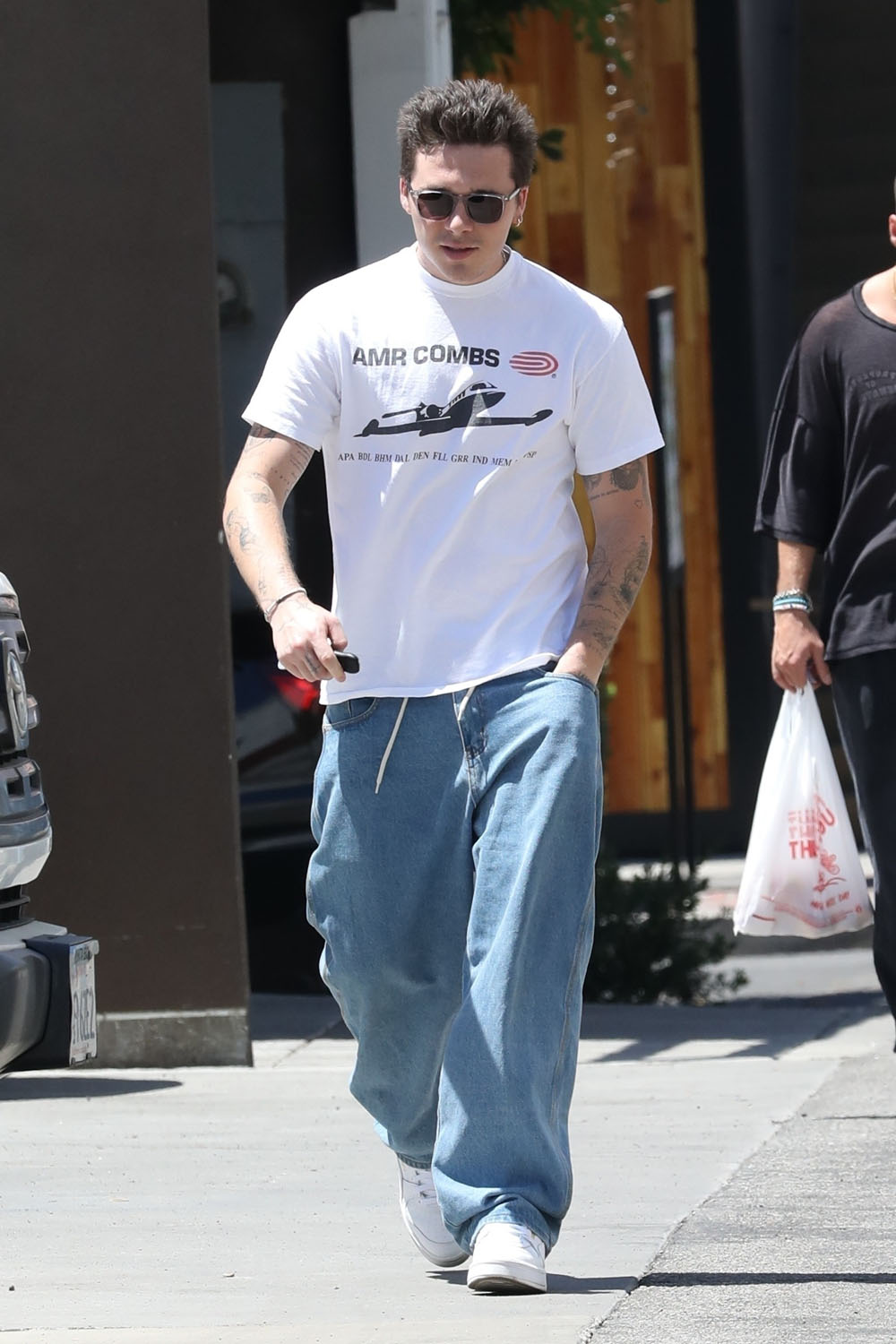 I say this because Brooklyn’s nepo baby-ness is making headlines right now. But first, some background: Brooklyn, of course, is the first child of Victoria and David Beckham. He went to design school and then dropped out. He tried to be a photographer for a while and got a publishing deal for his photos, which were not all that special. But somehow he landed a job at Burberry shooting their campaign. That was a few years ago. Then he moved on to modelling, but Superdry did not renew his contract earlier this year. Because he says his true calling is in the kitchen. He’s a chef now.