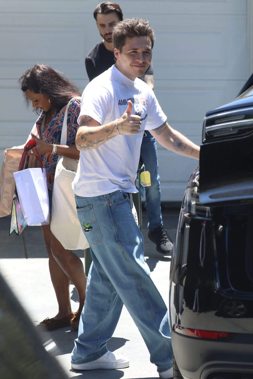 Much of the gossip around Brooklyn lately has been about whether or not he and his wife, Nicola, are beefing with his parents. Brooklyn and Nicola were seen a few days ago at the Day of Indulgence event – basically a gifting suite for celebrities and mostly attended by women. As far as I could see, Nicola was the only one who brought a male partner. They’re newlyweds so, sure, they’re inseparable right now but seeing him there pinged me. Because now I’m curious about their social circle – do they have one?