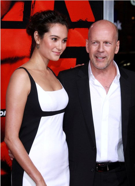 Attached – Bruce, wife Emma, and my Rumey at the RED premiere the other night. Surprise, he wasn’t packing.