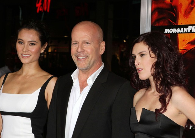 Attached – Bruce, wife Emma, and my Rumey at the RED premiere the other night. Surprise, he wasn’t packing.