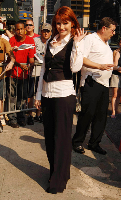 I LOVE M Night Shyamalan. I have loved everything he’s made, even Unbreakable, which is why I guess it’s no surprise that I loved Lady in the Water - probably not for everyone but definitely, definitely for me. Having said that, I’m also very much looking forward to seeing Bryce Dallas Howard in anything OTHER than a Night production. At the very least, it would be nice to hear how she speaks when she’s not communicating like a pilgrim or a water nymph educated in proper but not colloquial English. Besides, I only just realised how attractive she is. Here she is arriving at Letterman the other day, glorious in red, with the most beautiful eyes, skin from heaven, and a decidedly sh*tty sense for fashion. No…she’s not perfect. We’ll definitely have to work on that one.