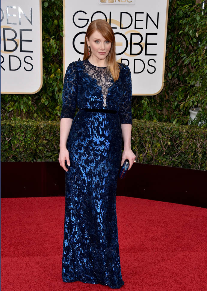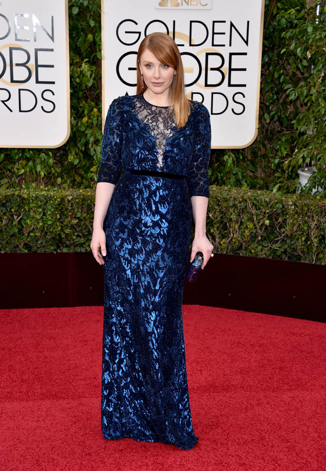And if you somehow didn’t hear the deal with the dress—are you one of those wise people who just watches the show?—when asked who she was wearing, Bryce Dallas Howard didn’t just answer. She explained that she had bought the dress at Neiman’s, because, she implied, a stylist will only bring you one choice of dress if you’re a size six, and she wanted more options.