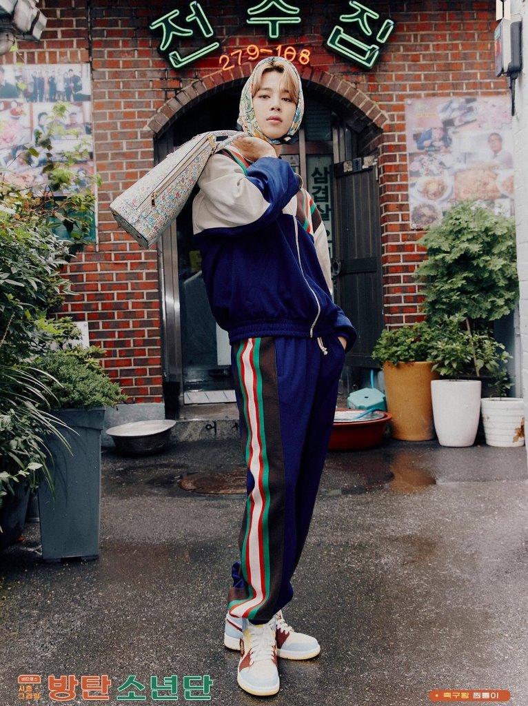 What really pushed me over the cliff though is Jimin and that headscarf with a tracksuit. Gucci, of course.