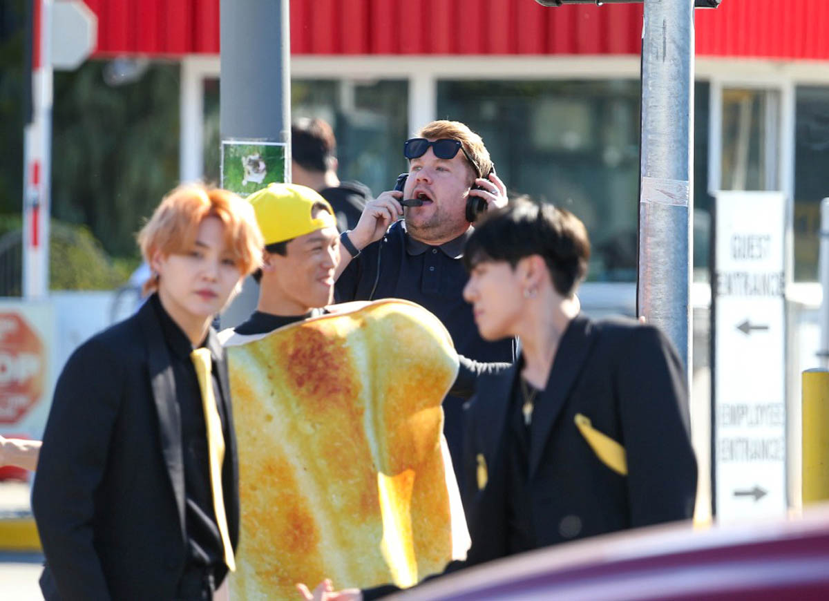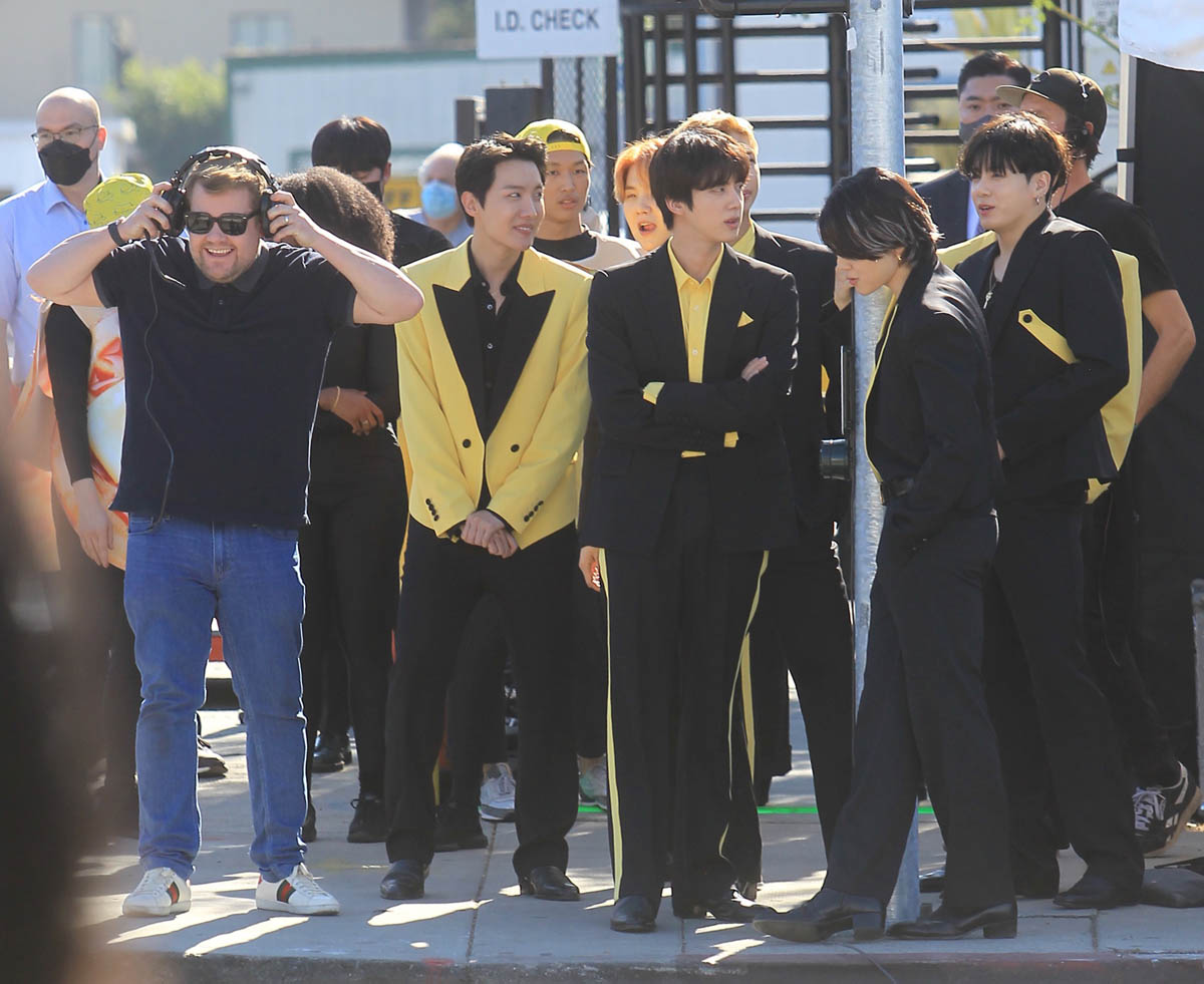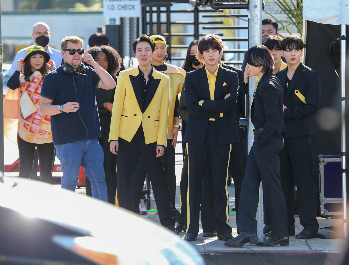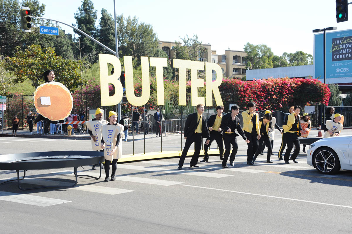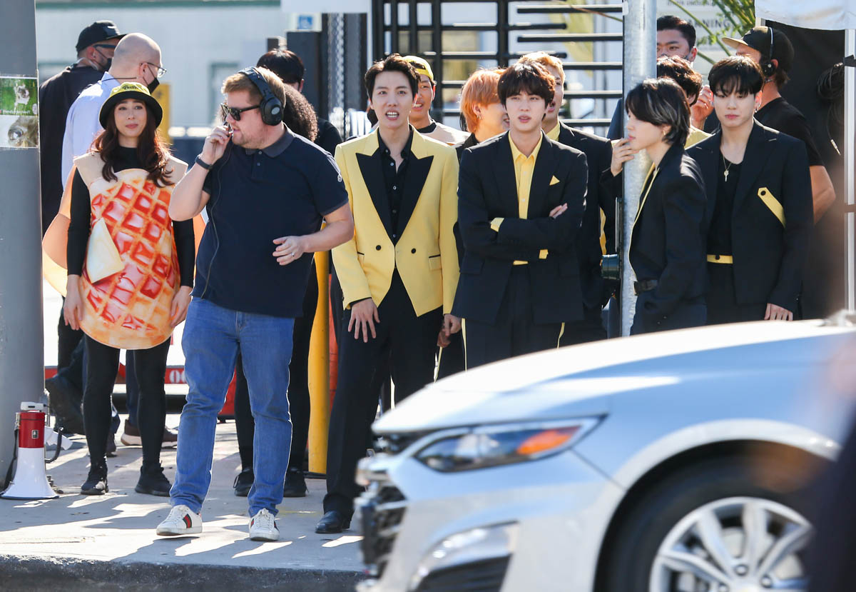BTS is always entertaining on Corden, his show is a good format for their energy, and that Carpool Karaoke, in particular, was a great showcase of their personalities, and what Corden can bring to the late night format. Seeing as they’re now in LA for a few weeks ahead of their four upcoming shows at SoFi Stadium kicking off in a few days, it’s not a surprise to see them back on Corden, back in his studio where they’ve appeared several times over the years, for an interview and a performance. And earlier in the day they were seen doing a traffic stop segment that will likely air on an upcoming episode. But people posted it all over social media. And it also ended up on local news because one of the local news anchors just happened to have been in traffic at that time: