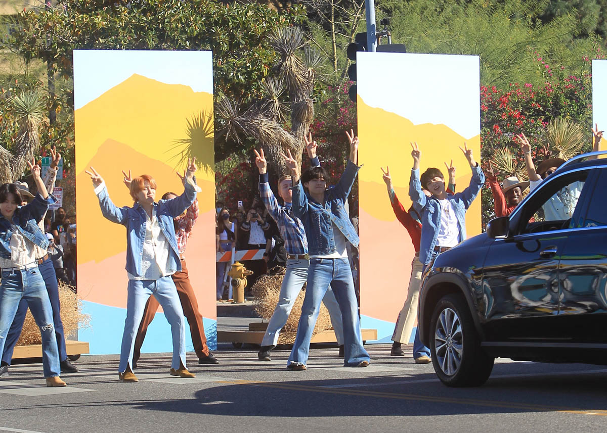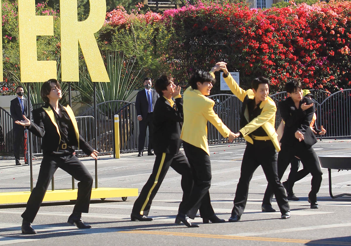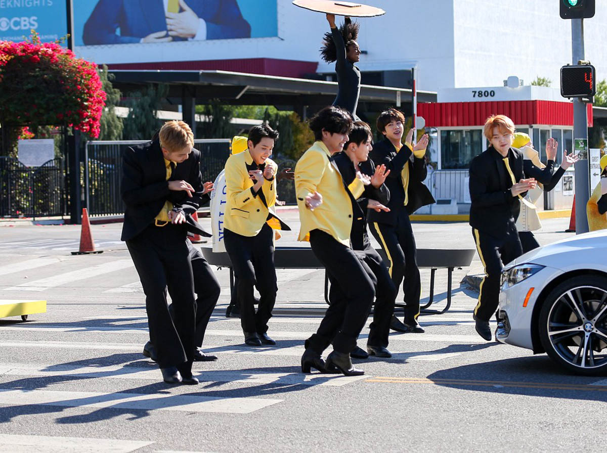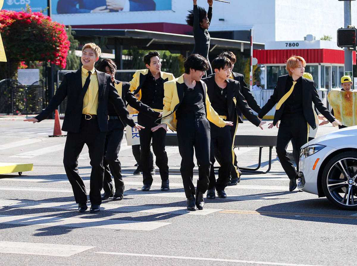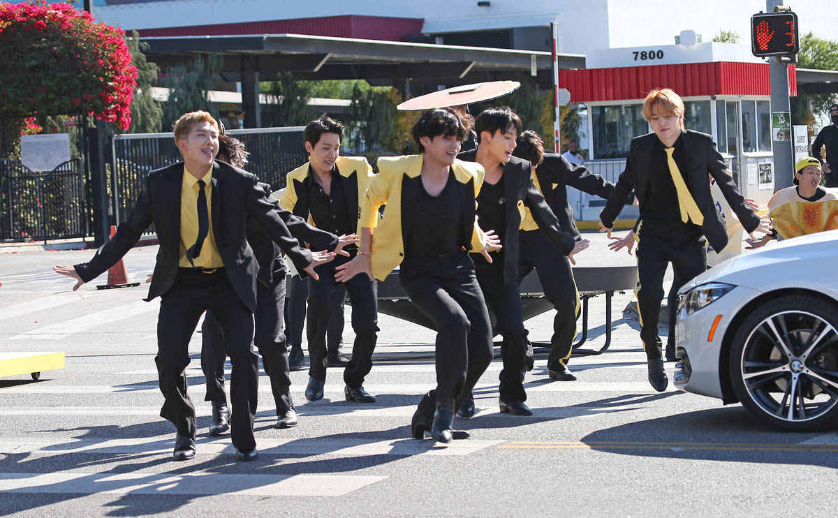 BTS is always entertaining on Corden, his show is a good format for their energy, and that Carpool Karaoke, in particular, was a great showcase of their personalities, and what Corden can bring to the late night format. Seeing as they’re now in LA for a few weeks ahead of their four upcoming shows at SoFi Stadium kicking off in a few days, it’s not a surprise to see them back on Corden, back in his studio where they’ve appeared several times over the years, for an interview and a performance. And earlier in the day they were seen doing a traffic stop segment that will likely air on an upcoming episode. But people posted it all over social media. And it also ended up on local news because one of the local news anchors just happened to have been in traffic at that time: