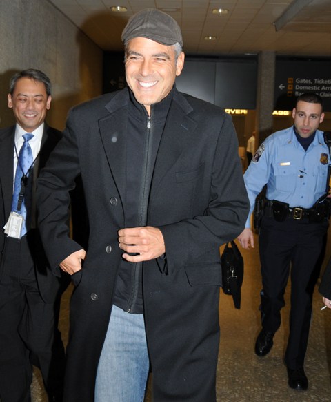 Much as I wish I had access to his schedule, I’ve no idea what George Clooney is doing in Washington. The inauguration is still a week away. Perhaps more lobbying? Whatever the reason, he arrived there today all smiles, looking fit and vibrant and full of charisma as usual and as enjoyable as the Globes were on Sunday, there would have been an added element of A list had he been there, non?