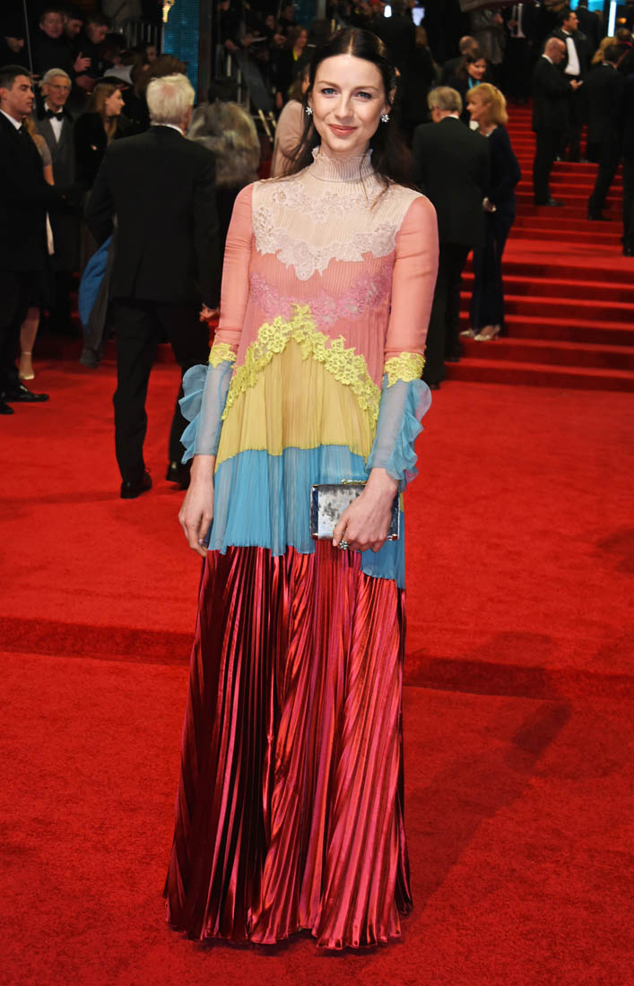 As was the case with Naomie Harris, I appreciate the idea here. To not wear what everyone else is wearing. And, actually, I quite like the shape of this dress. It’s not body-con. It’s high right up to the neck. It’s everything I like. Except…the colours are killing me. I’m not sure you can push it that far with the styling and then fly off the cliff with these colours. If you want the design to stay, you maybe take it down to colours that are less provocative? And definitely not so many? I’d love to see a version of this dress in a dark green and silver. Or a pewter and maybe a deep red.