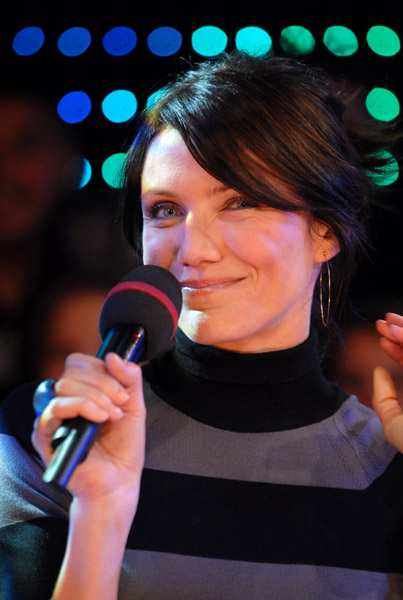 Can’t get enough of her closet. And the way she works it. I know you must be sick of my gushing but if you love clothes, you have to admire hers – especially because they probably wouldn’t work on anyone else. Check it out – stripes on TRL yesterday. Thick horizontal stripes and the stockings - the perfect touch, just a peek of skin. Then of course it was the NYC premiere last night of The Holiday and the short, ugly-on-anyone-else-except-Cam metallic dress with those shoes…those shoes… Seriously gossips, style-wise I think she’s infallible. Pro-love continues for Cam. And it doesn’t hurt either that in true hypocrite fashion, since she has something to sell, she’s now always happy to see the pappies. Hey - fickle works for me, savvy? Source