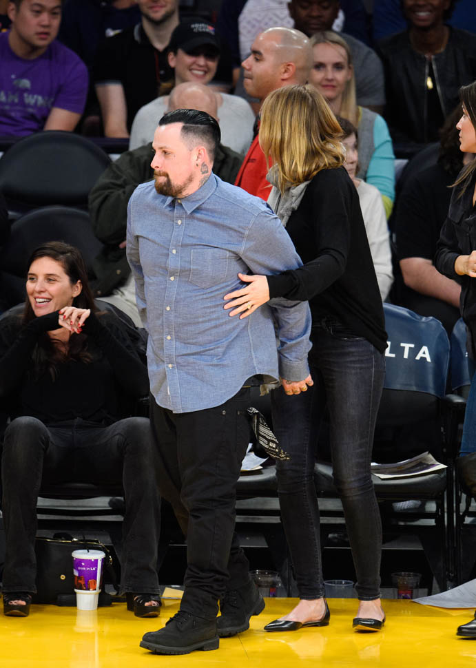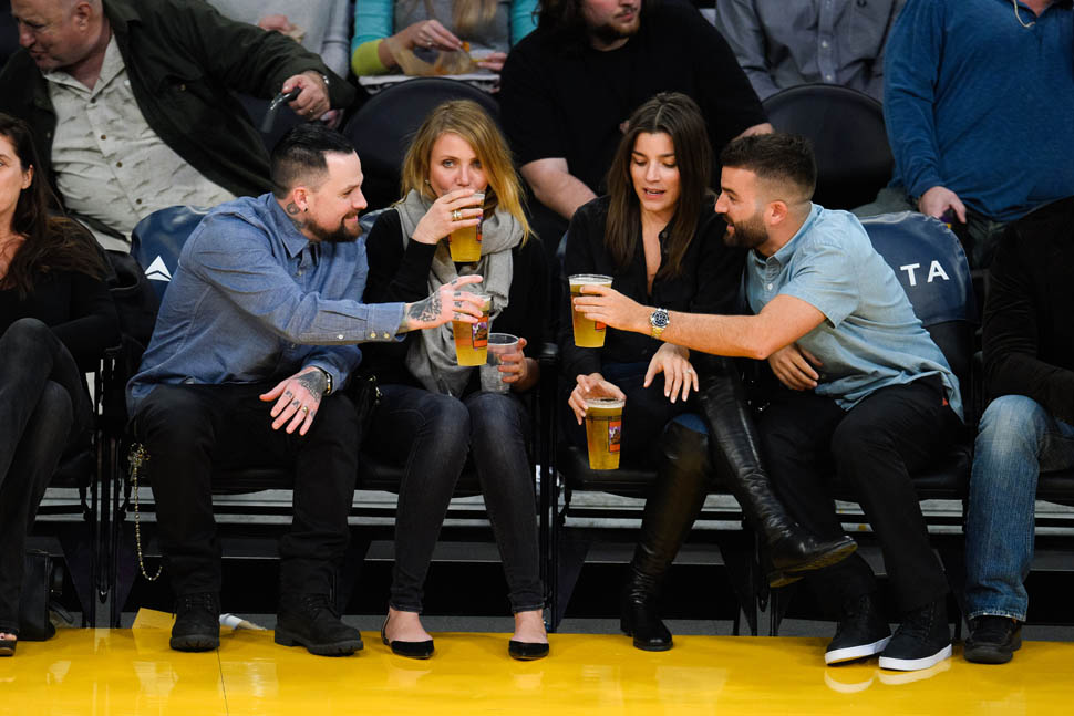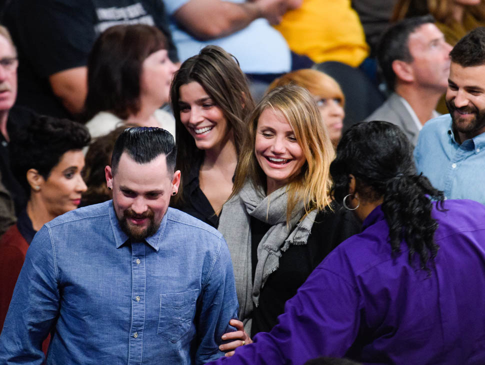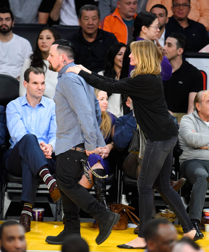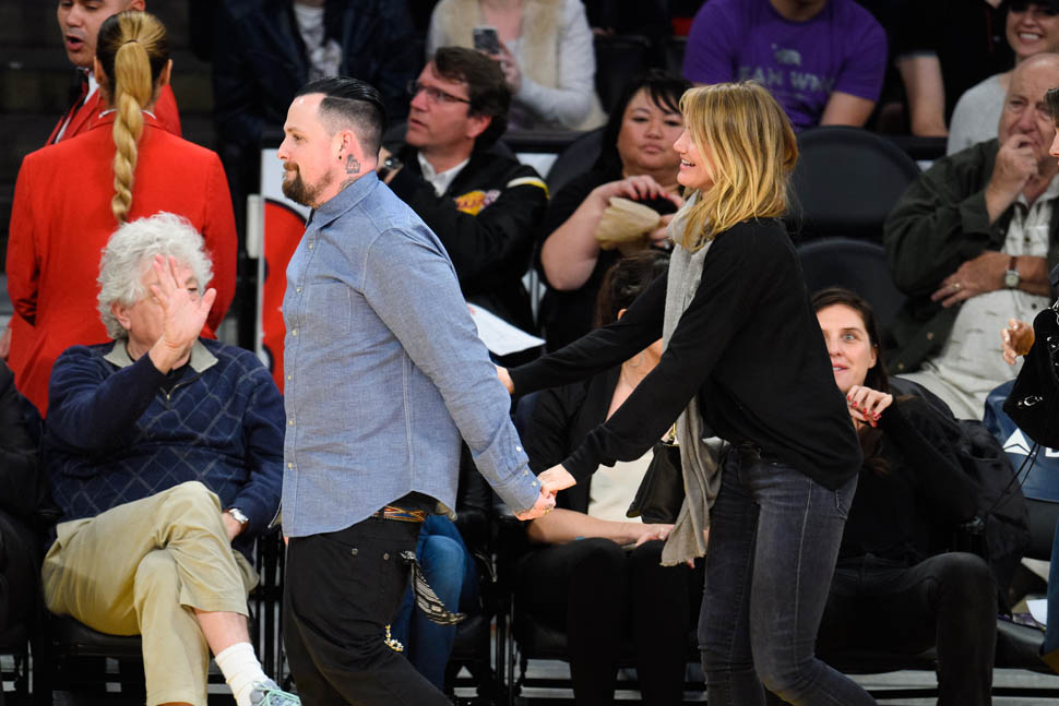 Cameron Diaz and Benji Madden were married three weeks ago. Last night they sat courtside at the Laker game, relaxed and happy. She just seems so...comfortable, right? That's my Photo Assumption of the scene.