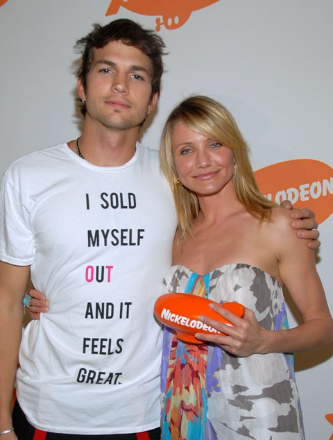 Seriously. Watch the trailer. Ashton Kutcher looks f*cking hot. Cam absolutely not. As in her face is totally busted. Not unlike the way it was on Saturday at Kids’ Choice where she received the Wannabe Award. As in they wannabe her.