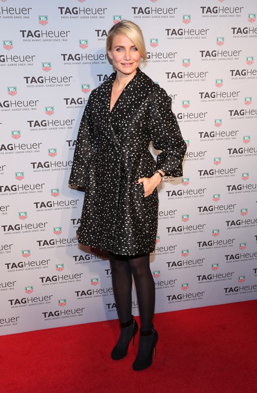 There are a lot of Rats in Hollywood. 1972 seems to be a big celebrity year. In addition to Gwyneth Paltrow, there’s also Ben Affleck, Jennifer Garner, Jude Law, Eminem, Sofia Vergara, and Cameron Diaz. Cam stepped out last night in New York at the TAG Heuer flagship opening in an amazing coat and fresh skin, looking like she’s ready for whatever sh-t the Horse is about to jam in her face.