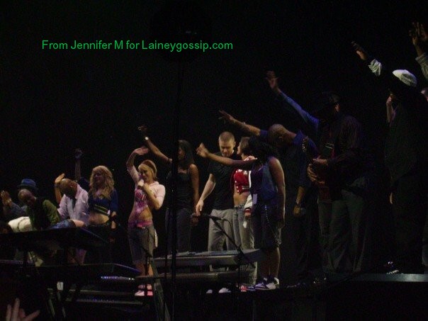 I wrote yesterday about a concertgoer’s unsatisfactory experience at the JT concert in Toronto, asking at the end for more feedback. Pretty much 50/50. Some of you loved it, some of you thought it was the show of a lifetime, and some of you who went in wanting the show of a lifetime came out pretty disappointed. Not exactly profound or earthshattering – afterall, 100% approval rating is virtually impossible. But fair to say not as reliably entertaining as say…some of the bigger acts in music? Is he really “there” yet??? Some reader unedited reviews below and then some observational gossip: From Samantha V in Toronto: Great vocals. Impressive showmanship. Amazing energy. What"s not to love about Justin? Seriously. Or maybe you need to see it for yourself to believe it... For me and my friends, we loved every minute of it. From Steve in Toronto: I didn"t sense any of JT"s so-called arrogance, and contrary to reports on your site from other fans, I did see him touch hands with fans on numerous occasions. Maybe he didn"t touch her hand or hands in that section, but from my vantage point, he was very close with the audience and definitely touching them. One thing I did sense was an anger towards Cameron Diaz. At one point, he put the middle finger up during a "you loved me and left me" kinda song. And he sang other love/break-up songs with an intensity that"s hard to describe. From Laura G Montreal: OK, I figured the show was staged but not to the point of being scripted. He used the exact same “Don’t try this at home” line at the Montreal show last night and barely acknowledged the audience who kept trying to sing him “Happy Birthday.” Only when Timbaland (whose boring-ass, self-glorifying set killed the party vibe that I will admit JT was rocking in the first half of the show) showed up with a cake did he even admit that it was his birthday and crack an unscripted smile. Overall, an amazing piece of work from a production standpoint (lighting, dancing, staging, singing) but not an ounce of room for spontaneity or connection with the fans. Disappointing on that level, but I guess I never should have expected him to reach out to the people who put him there. From Nicole B. D. in Toronto (had to laugh at this one): My personal lowlight of the show was when he came onstage for his encore. In all seriousness he said “Really? Really? You want me to play some more? Wow. Toronto, you’re amazing. This is amazing. There’s a one in a billion chance that I would be the person sitting here at this piano, and I want you to know that I seriously love you all.” I nearly Rossumed on my shoes. Particularly since his piano came up through a hole in floor 5 seconds after he left the stage. As you would say Lainey: Bitch, please. We all know that you are coming out for an encore. We are not the teenybopper audience of your N’Sync days. Get over yourself. I went to the concert looking forward to a high energy show with lots of dancing. As Simon Cowell would say – it was distinctly average. And finally…from Jennifer M in Toronto – surmising on a potential tour hookup, photo of the girl in question attached: towards the end of the show, the brunette came to our side of the stage and frolicked around in her crop-top red and white varsity "JT" jacket acting like a ten year old in hopes of making every girl jealous (which they/we were). And then at the very end, when JT and crew did their big bow...she ran up the stage, right over to Justin so she could stand next to him for this and proceed to whisper in his ear and grab his hand. If you ask me, if he"s banging any of the dancers, she"s for sure the lucky one. ************* And it would make sense too. Remember Jenna Dewan? Thanks to all of you for sending your comments.