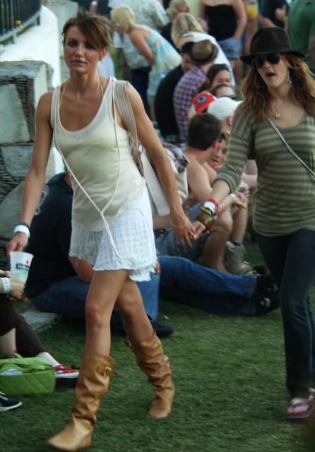 Drew Barrymore is NOT That Girl. And neither, I assume, is Cameron Diaz. Another female classification for these two but first the positive: Drew and Cam at Coachella. Drew and Cam looking super cute. Especially Cam. It’s really too bad she associates with Paris Hilton – the only thing preventing a full on love affair.