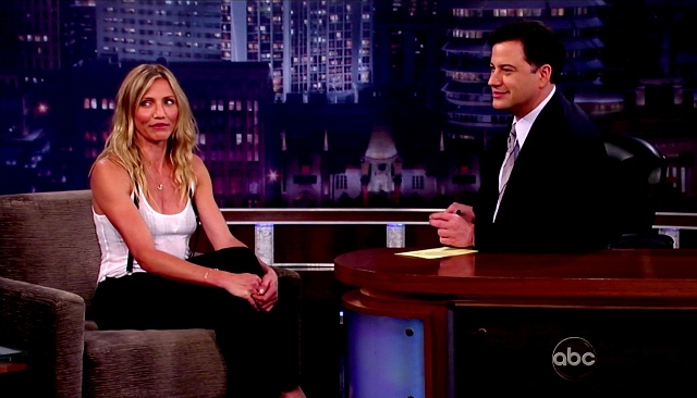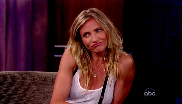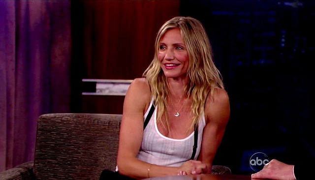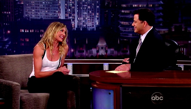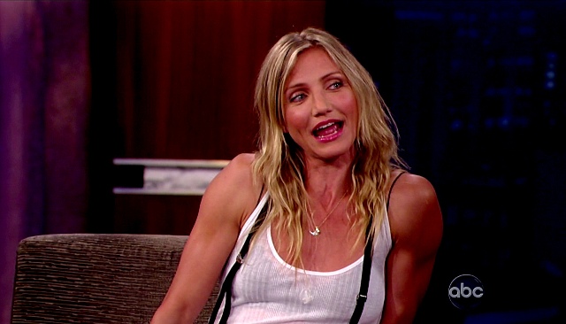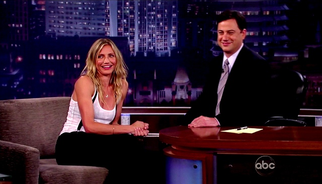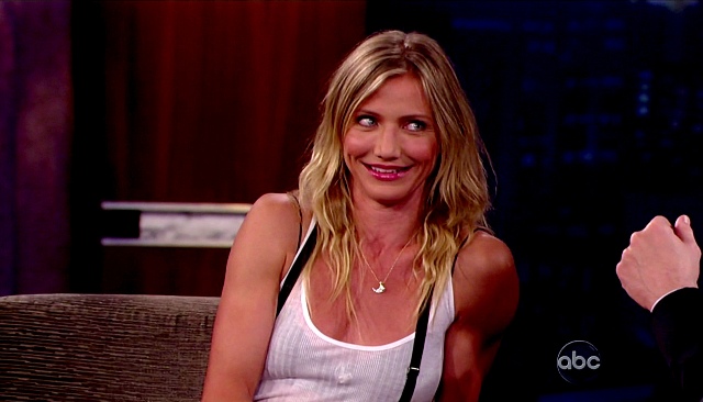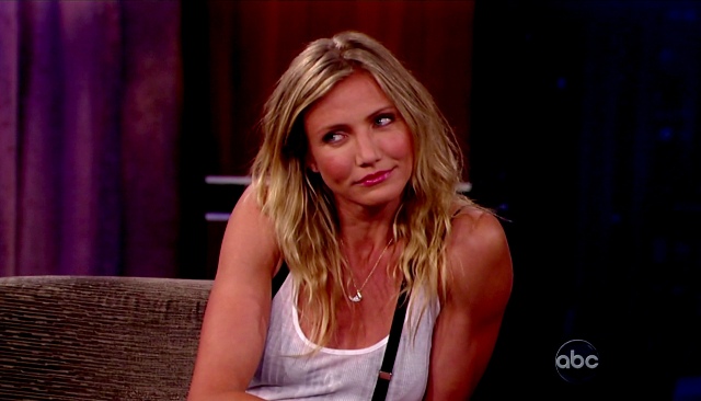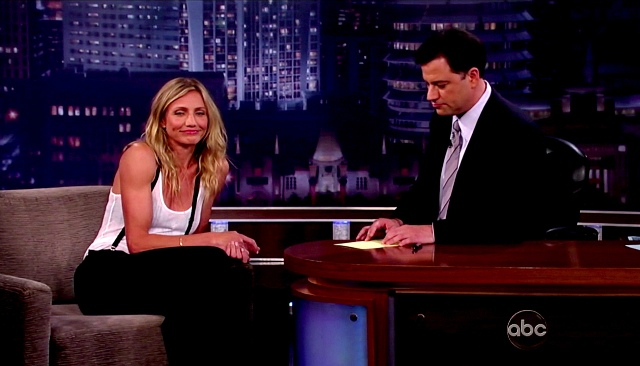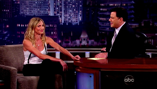 Cam was on Jimmy Kimmel last night with her ripped arms like totally in your face on display in a tank top, trousers, and suspenders. I love the look but I can’t stop looking at her shoulders and biceps. She is always a good interview though. She wants to be loose and engaging, with a lot of personality, who loves porn, and that’s great… only now that I know she’s so pathetic, I wonder if she is that great only because she knows it appeals to guys which is totally not the point.