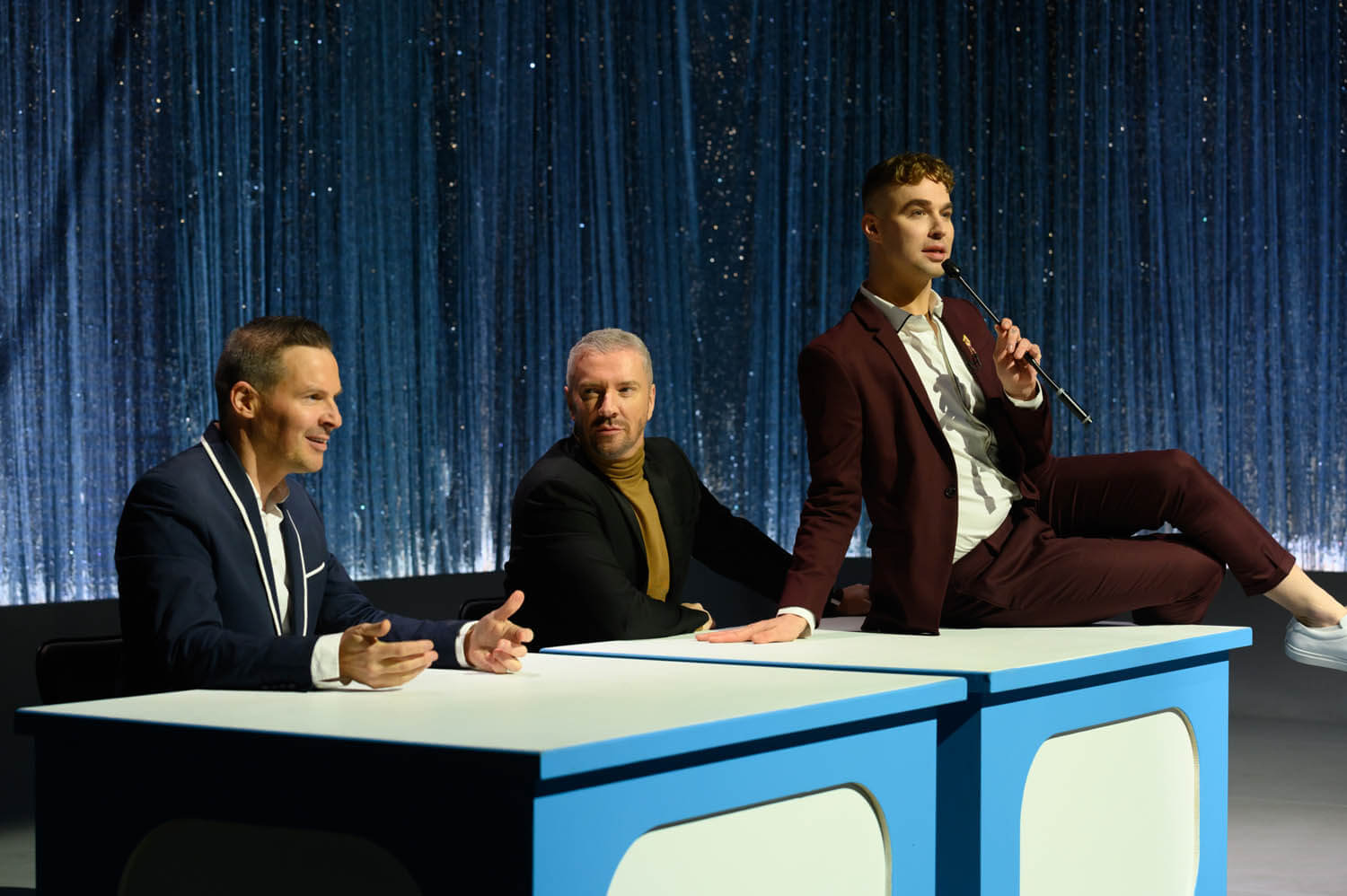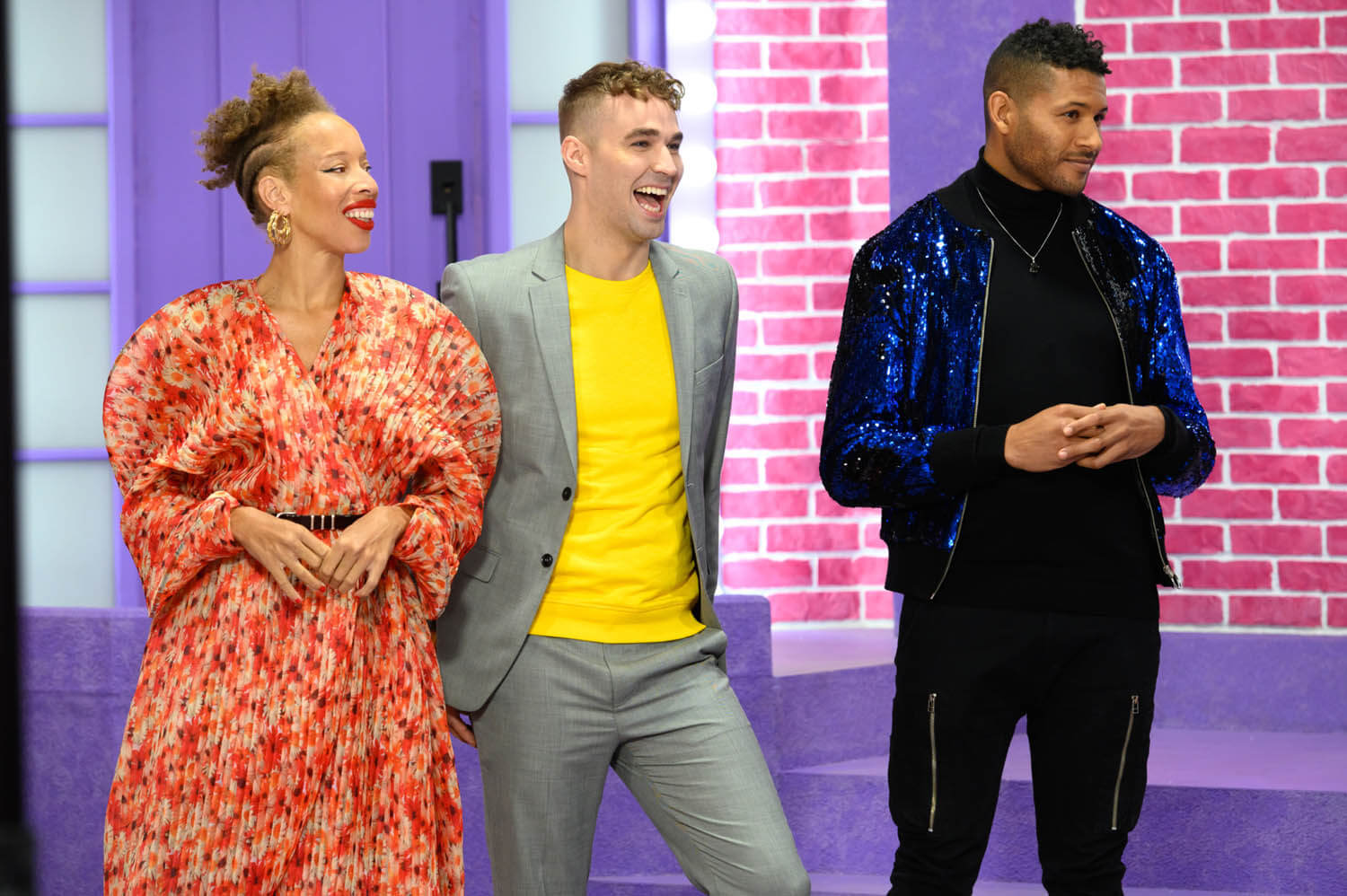Yaaaaas Canada, you look SO good! Although there are only a few photos, they make the show finally feel real and tangible. It’s also a carefully curated glimpse into some of the looks, the sets, and the personalities of show. The judging panel is stunning, and I love the set and its pink brick. Brooke draping herself over a Snatch Game desk is confirmation enough for me that she’s going to be a great host. We even get a glimpse of some celebrity guests. For Snatch Game, it’s Colin McAllister and Justin Ryan, the Scottish interior design couple who are guest experts on CityLine and regular TIFF Red Carpet interviewers.