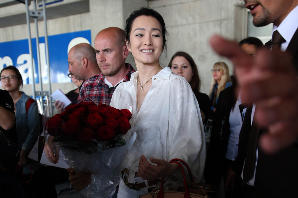 Attached – Cannes regular Gong Li arriving in Nice today.