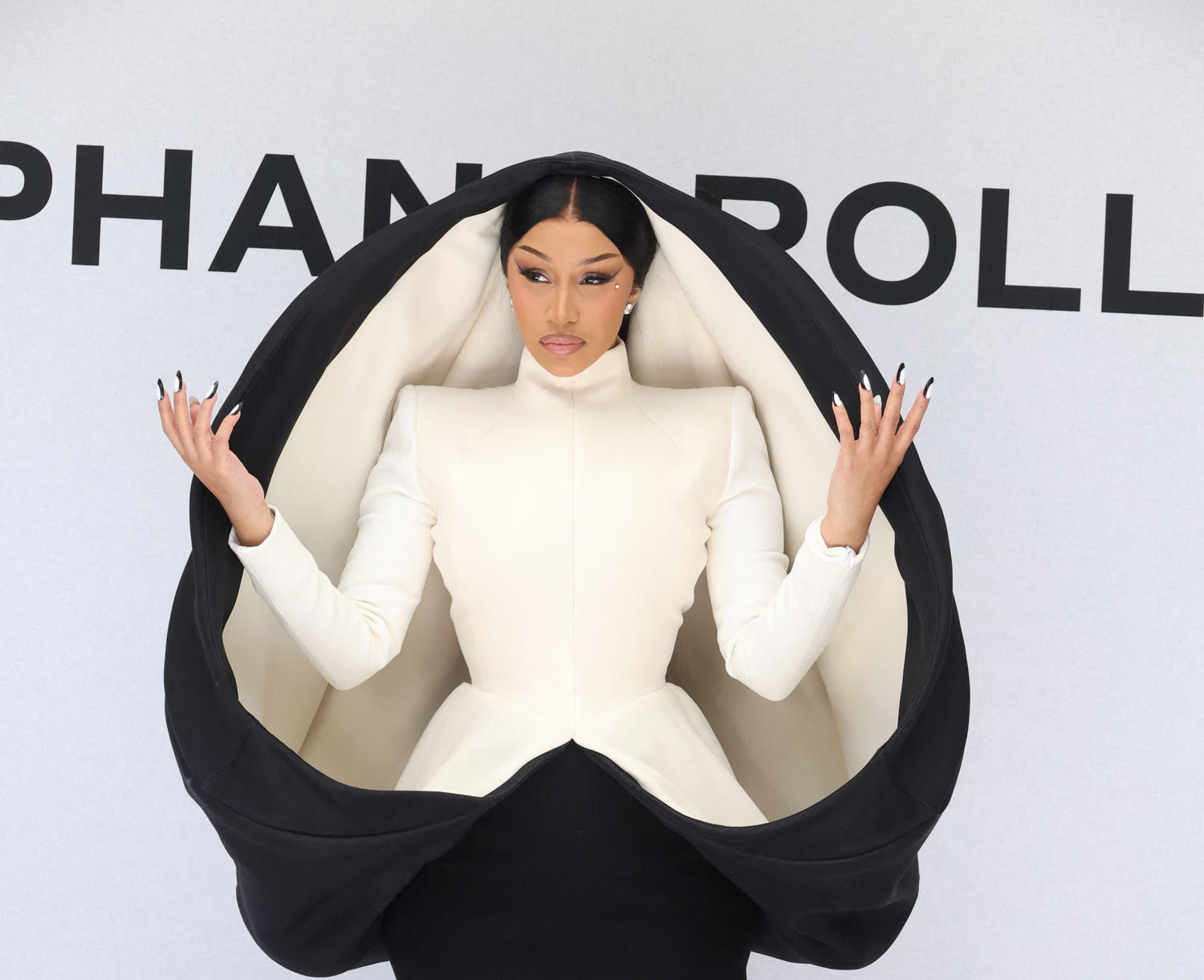 As for those looks she’s talking about, well, that’s part of the drama too because she has been f-cking serving it in Paris this week because drama is the whole point of couture. Yesterday was Stephane Rolland – a look specifically chosen for her: a nun and the Queen of Spades had a baby.