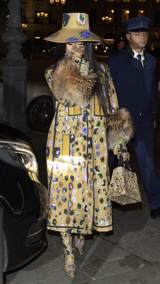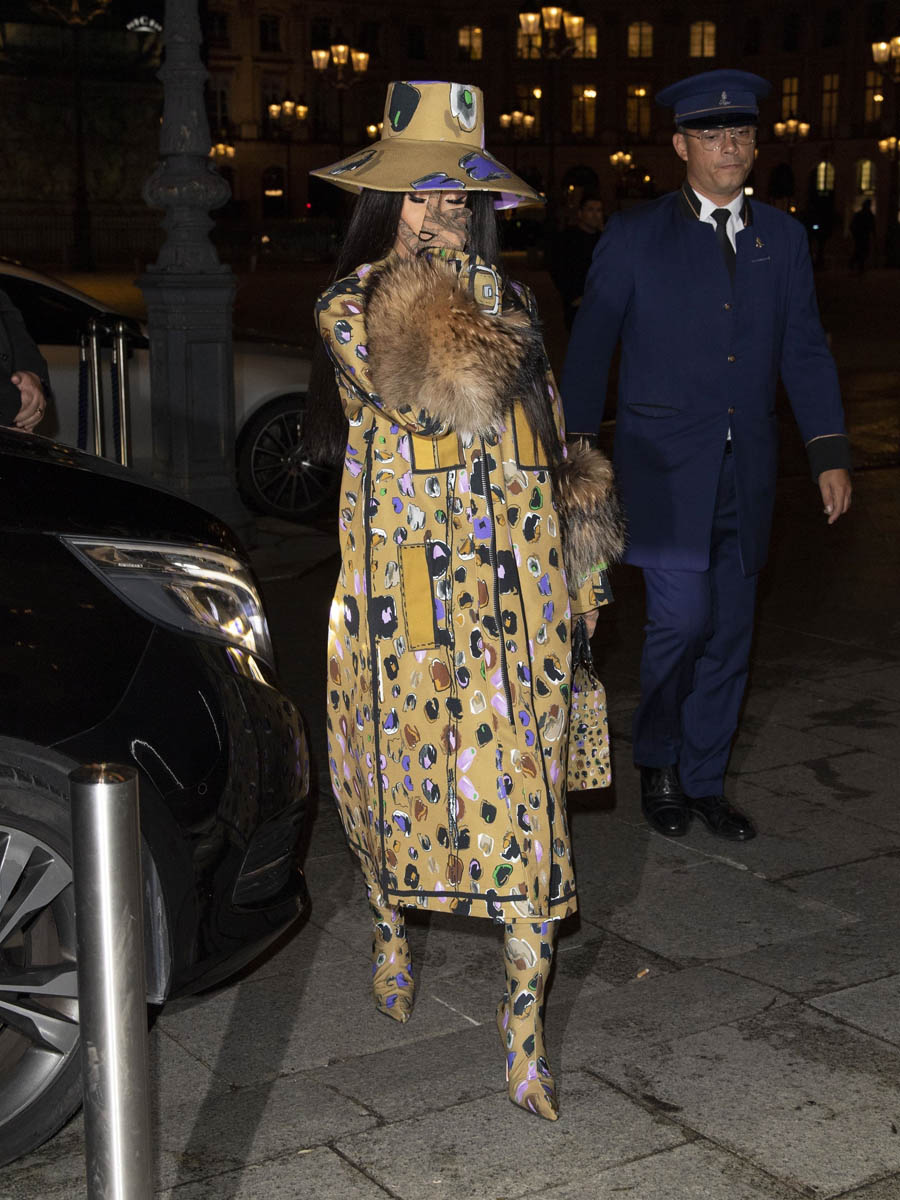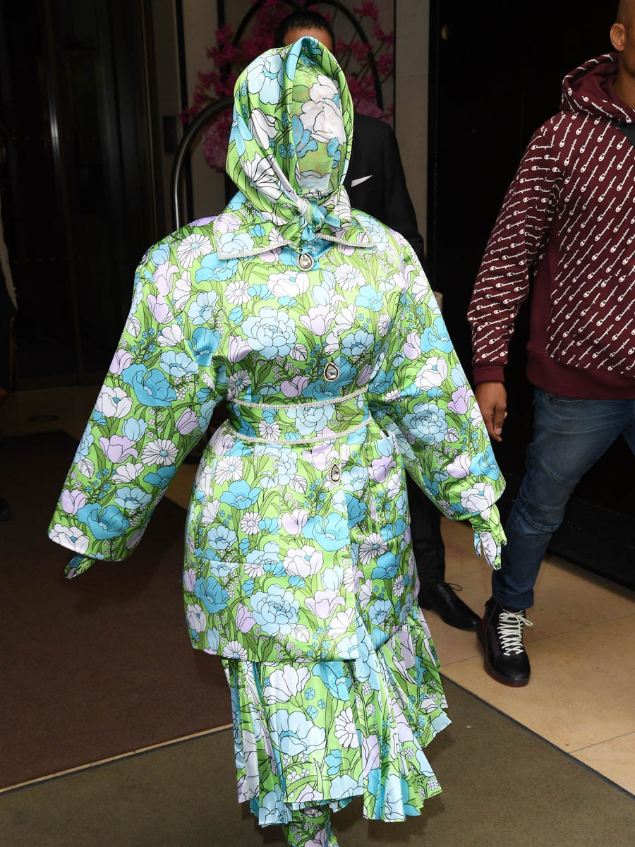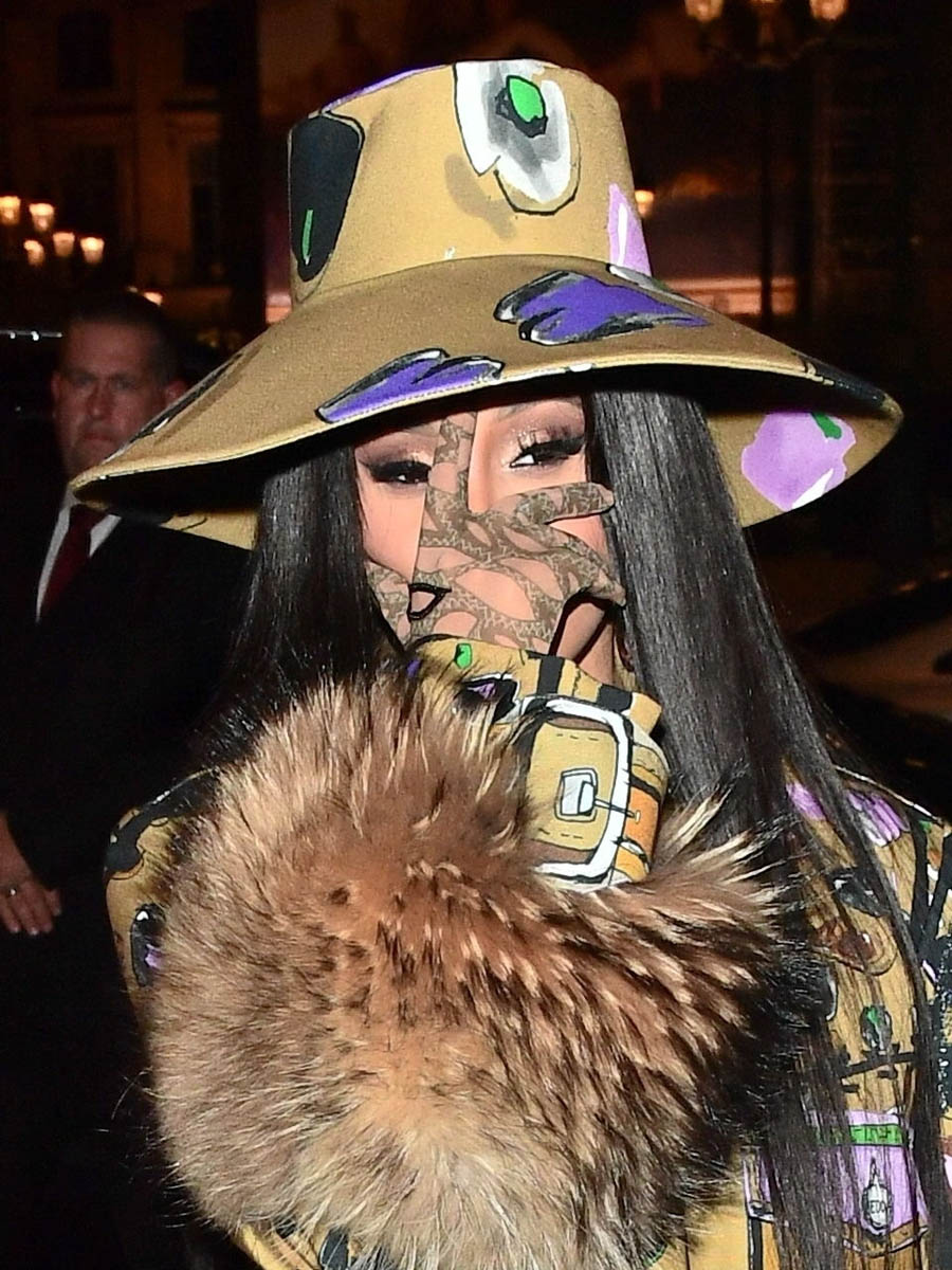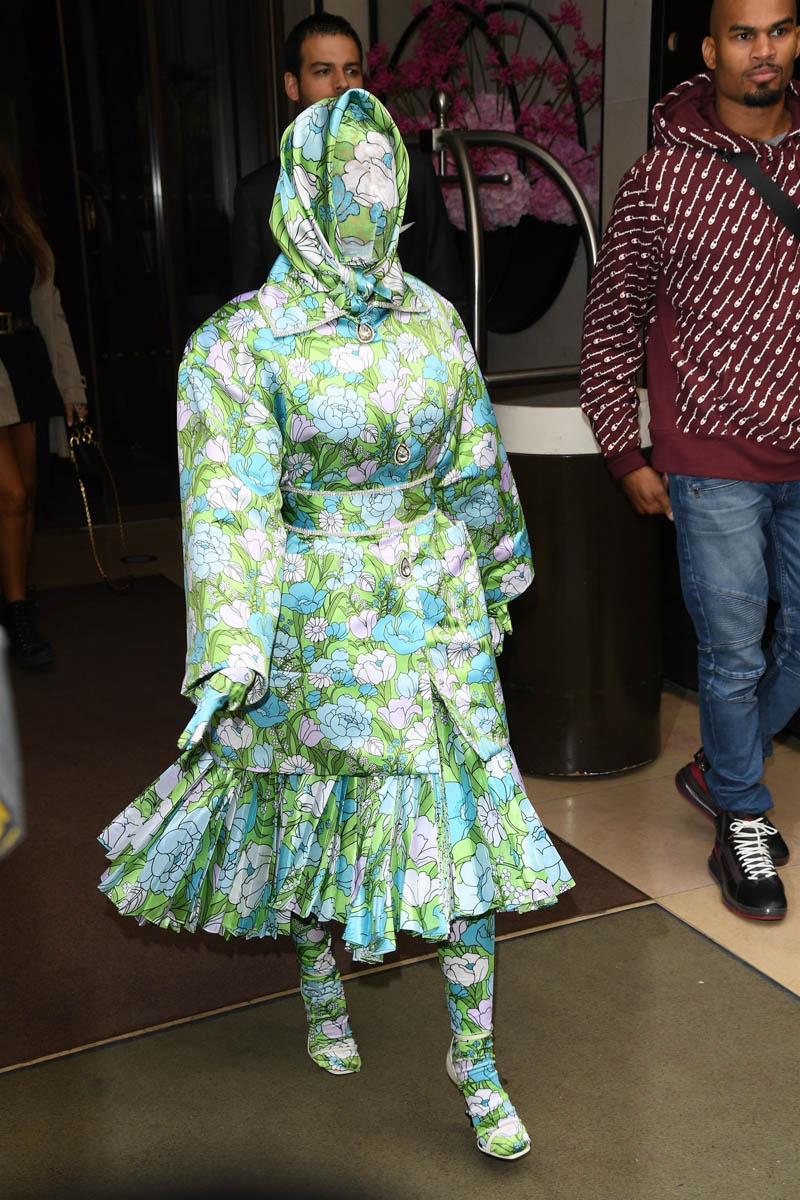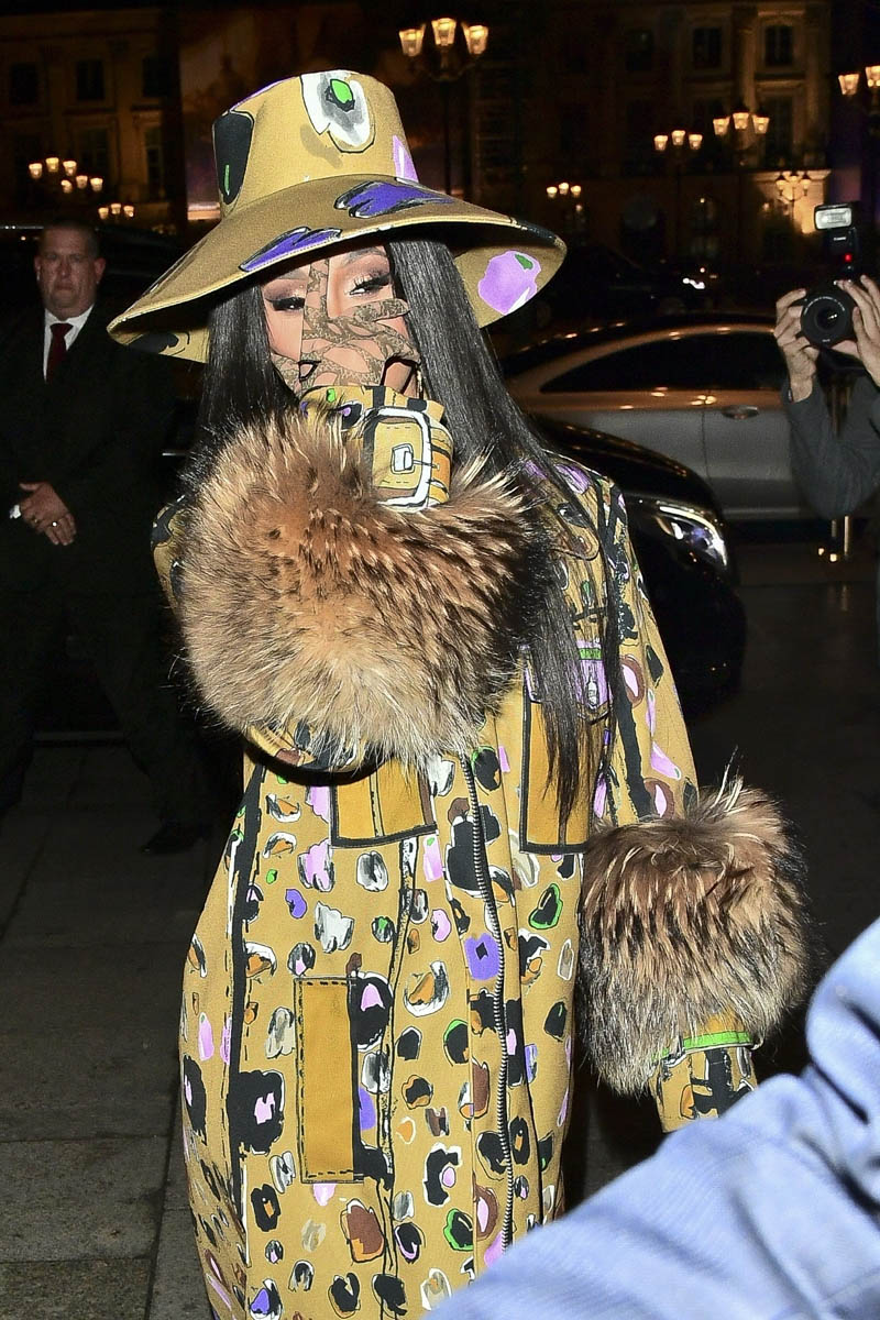 “You bitches could really never”, is one of the things Cardi says as she’s walking around, covered head to toe, at Paris Fashion Week. She also at one point says, “Make sure a car don’t hit me, cuz a bitch can’t see”, before nimbly stepping onto the curb. Seeing, clearly, isn’t a problem. My problem would be the breathing. I would feel claustrophobic in an outfit like this. And your breath would be hot the whole time, like how it is under the covers pulled up over your head. I don’t know how she could stand it. (Dlisted)