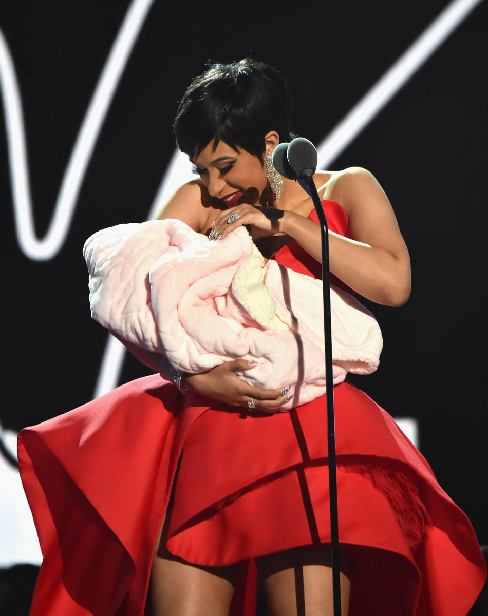 I’ll take Cardi B any way we can get her. This was her first appearance since she gave birth to her daughter Kulture last month. Did people really think she was a) going to perform or b) bring a one-month old baby out on stage at the VMAs? Please.