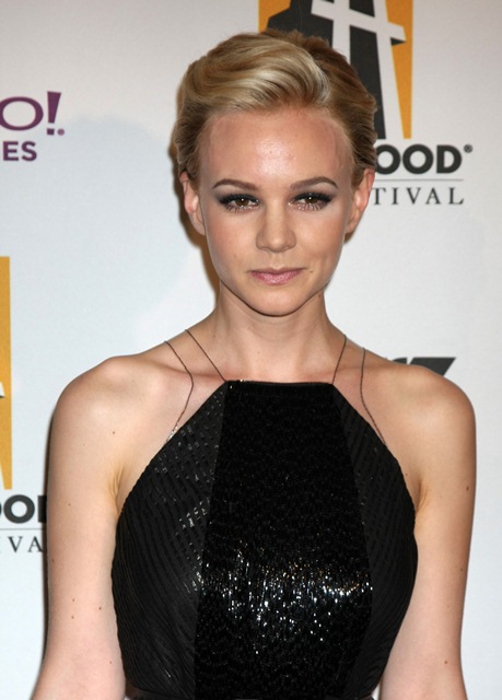Anyway, does it feel to you like she’s at this event, the Hollywood film awards, every year? It felt that way to me last night when I was looking through the photos. So then this morning I checked. And this is her third in a row. In 2009 she received the Breakthrough Award. Last year she presented it to Andrew Garfield. This year she’s the Hollywood Supporting Actress for her work in Shame. And she flew all the way from Australia, where she’s been shooting Gatsby, to collect it. That’s a condition of the Hollywood Awards, see? If you can’t come, you don’t get it. And she wanted it. And she wanted to be able to thank Shame director Steve McQueen: