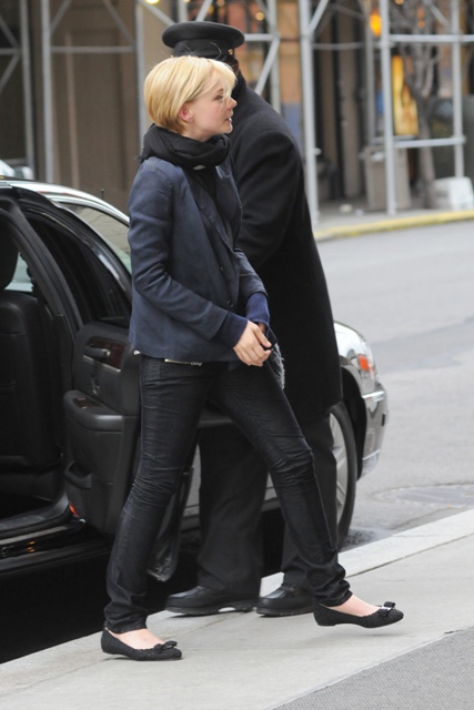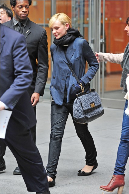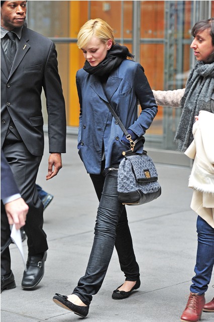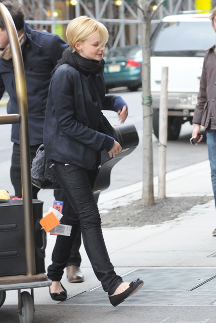 Check it out - a very rare sighting of Carey Mulligan and Marcus Mumford in New York this weekend where she participated in a New York Times event. Carey’s been in Australia shooting The Great Gatsby for Baz Luhrmann. She and Marcus are reportedly engaged though it’s not even a year since they started dating. I wonder if Shia’s stopped trying to call her. For a while there he was having a hard time letting go.