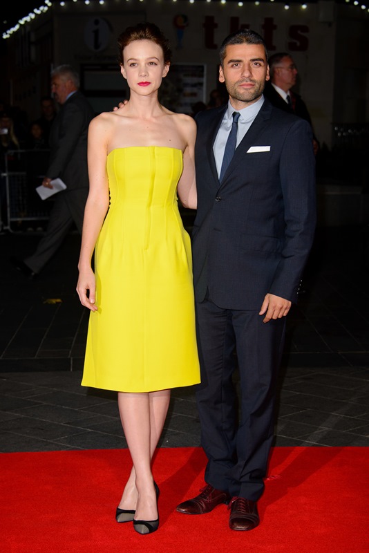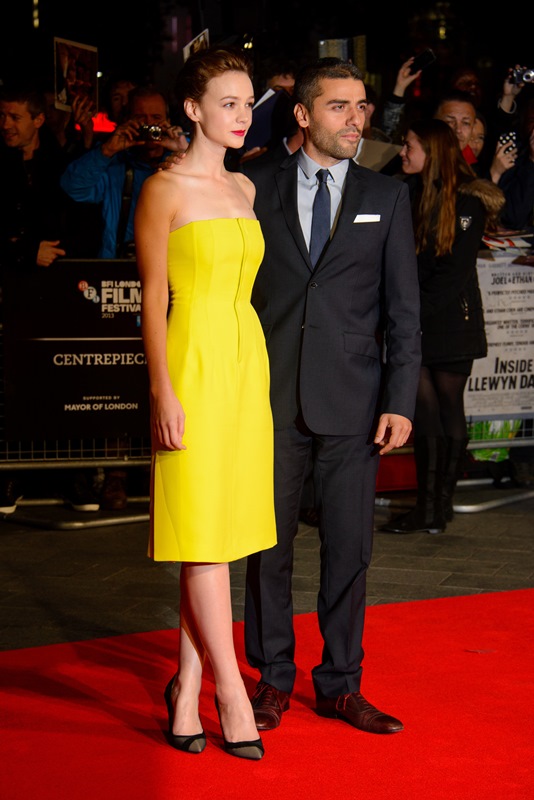 Carey Mulligan and Oscar Isaac were in London last night for a screening of Inside Llewyn Davis. I love her in yellow. And I love the shape of this dress. And YES, those are good shoes. No shoe hate here. No hate at all here. Not when one of my top girl crushes and the #1 on my Five List are in the same article, uncontaminated by Justin Timberlake. And why hasn’t JT been hijacking this film’s promotion? Perhaps waiting for the stink of Runner, Runner to clear.