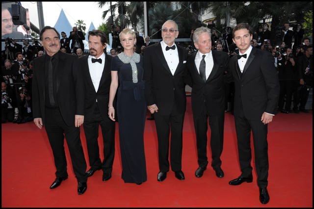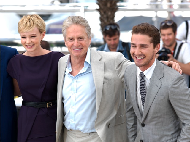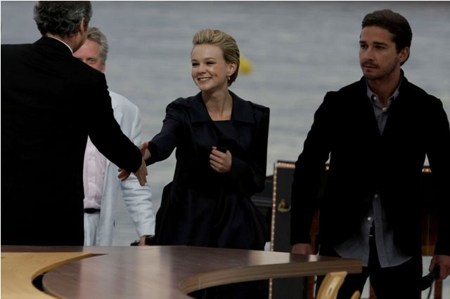 Goddamn they are cute. Carey Mulligan and Shia LaBeouf attended the Cannes premiere of Wall Street: Money Never Sleeps on Friday night. It was also my first time inside a gala screening as a guest. I walked the famed red steps – les marches – at the same time as George Lucas and Martin Scorsese. They were adored by fans and photographers. I was nudged along by security and scolded for loitering. But my seat was in the same row just across the aisle from the cast. So while Carey and Shia were careful not to pose together on the carpet, once inside the doors, they immediately clasped hands off camera and sat together during the movie. At the end when the house lights went up, the closed circuit feed went straight to the actors and Oliver Stone. Shia then clapped for Carey, as she giggled, then approached the camera and encouraged the crowd to clap for her too.
