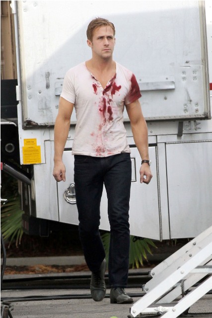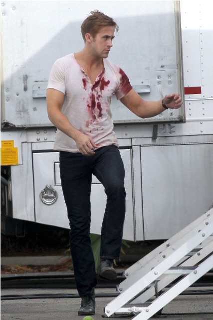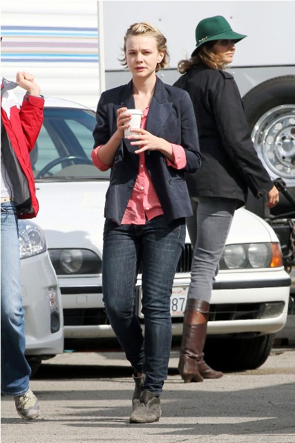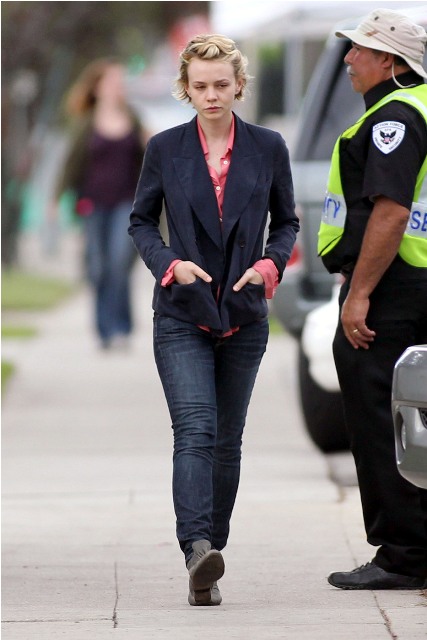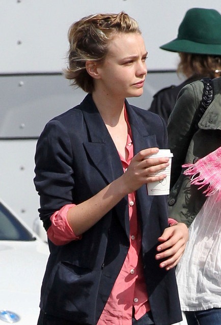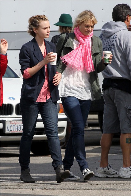 Carey Mulligan is in LA working on Drive with Ryan Gosling. Both were photographed on set yesterday. She looked extra pouty. Photo Assumption: post breakup single face?