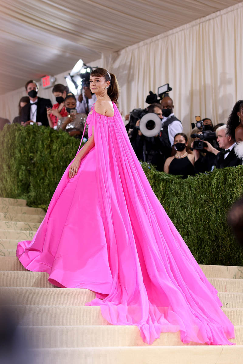 She’s in Valentino. It’s breathtaking. It’s a dream. And I know, on paper, it’s nothing special, but the way Pier Paolo Piccioli works with this taffeta, how flat it is, how clean the lines are, it’s really a work of art. As is that cape. I can never resist a cape. This cape is special, not because of how it’s made but because of how it’s styled – offset, falling off one shoulder, it totally changes the vibe of the whole look, right? We are about to see a new cape trend now, people wearing them like this, which is one of the purposes of the Met Gala, thank you Miranda Priestly. Trends start at events like this.