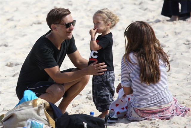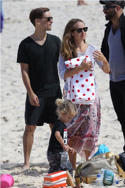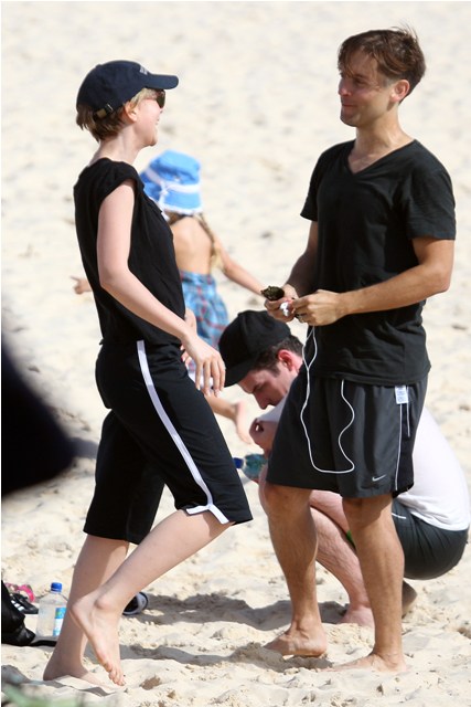 Carey Mulligan and Tobey Maguire (with wife and children) spent some down time at Bondi Beach this weekend. They’re in Australia shooting Gatsby. Leonardo DiCaprio doesn’t seem to have any interest joining his colleagues on these occasions. This... doesn’t make me want to like him.