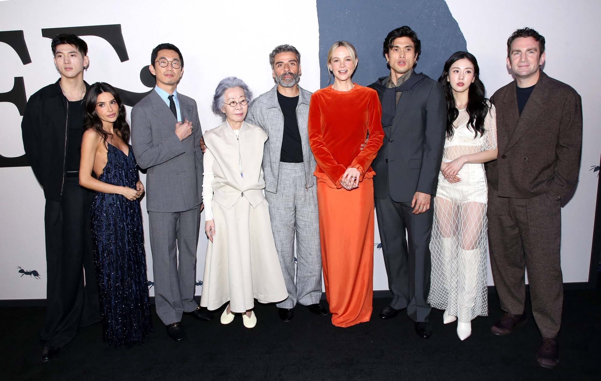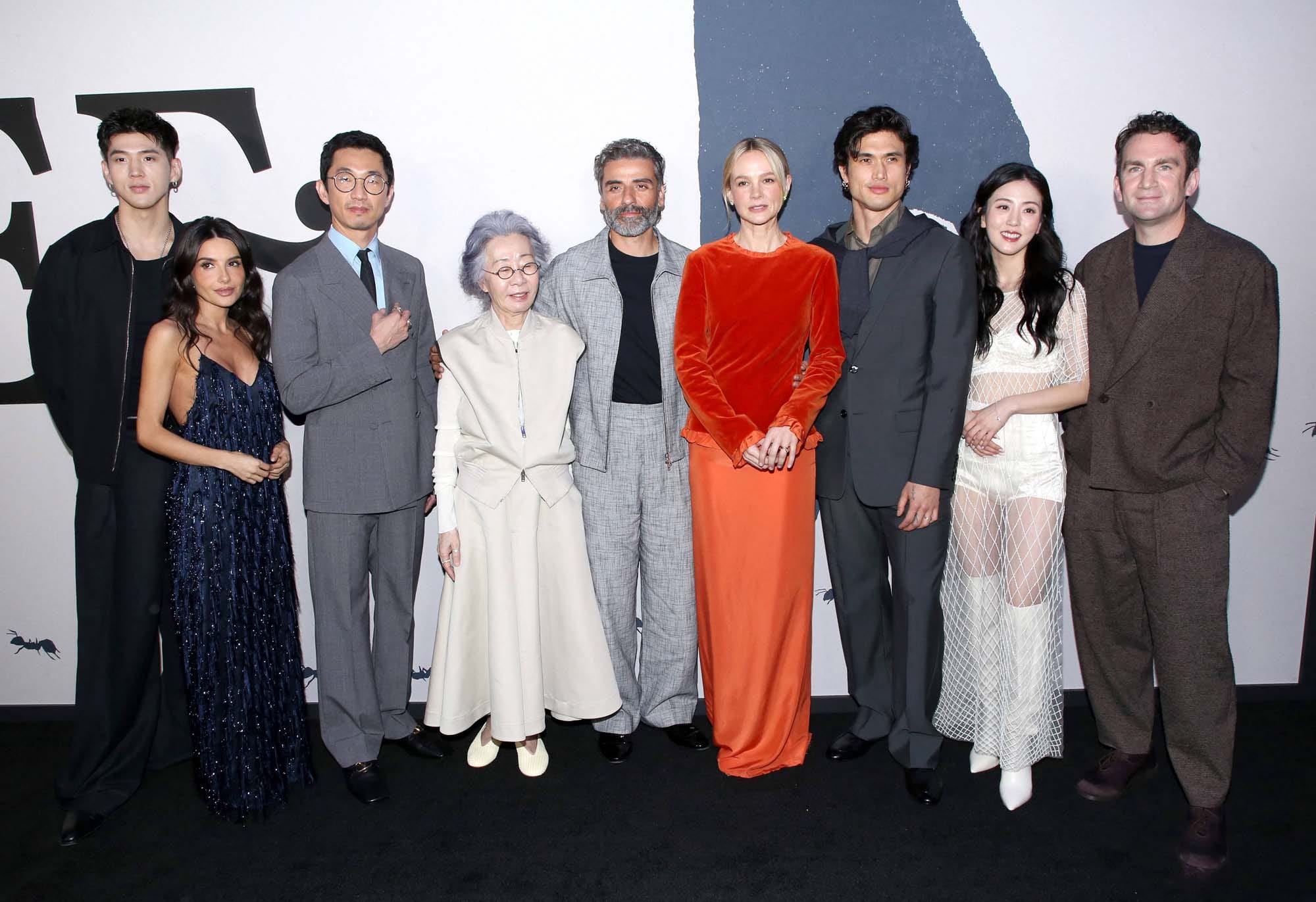 Matthew Kim, Mikaela Hoover, Lee Sung Jin, Youn Yuh-jung, Oscar Isaac, Carey Mulligan, Charles Melton, Seoyeon Jang and Jake Schreier attend the "Beef S2" New York screening at Regal Union Square on April 15, 2026 in New York City