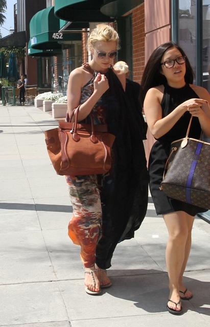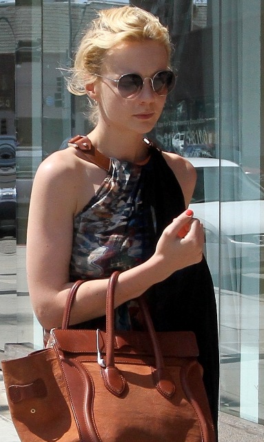 This is Carey Mulligan in Beverly Hills last Thursday. This weekend she was spotted in New York, shopping at the Bowery Whole Foods with some friends. The friends had a baby. Carey, as she is in these photos, was also wearing a very loose fitting maxi dress, described to me as more of a “giant caftan”. She seemed rather attached to the child and her friends referred to her as “Mommy Carey”. Cute nickname. Maybe she babysits a lot?