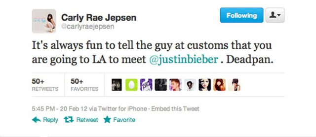 Here’s Carly Rae leaving Vancouver yesterday for LA where she’s expected to meet with all the big music executives, well on her way.