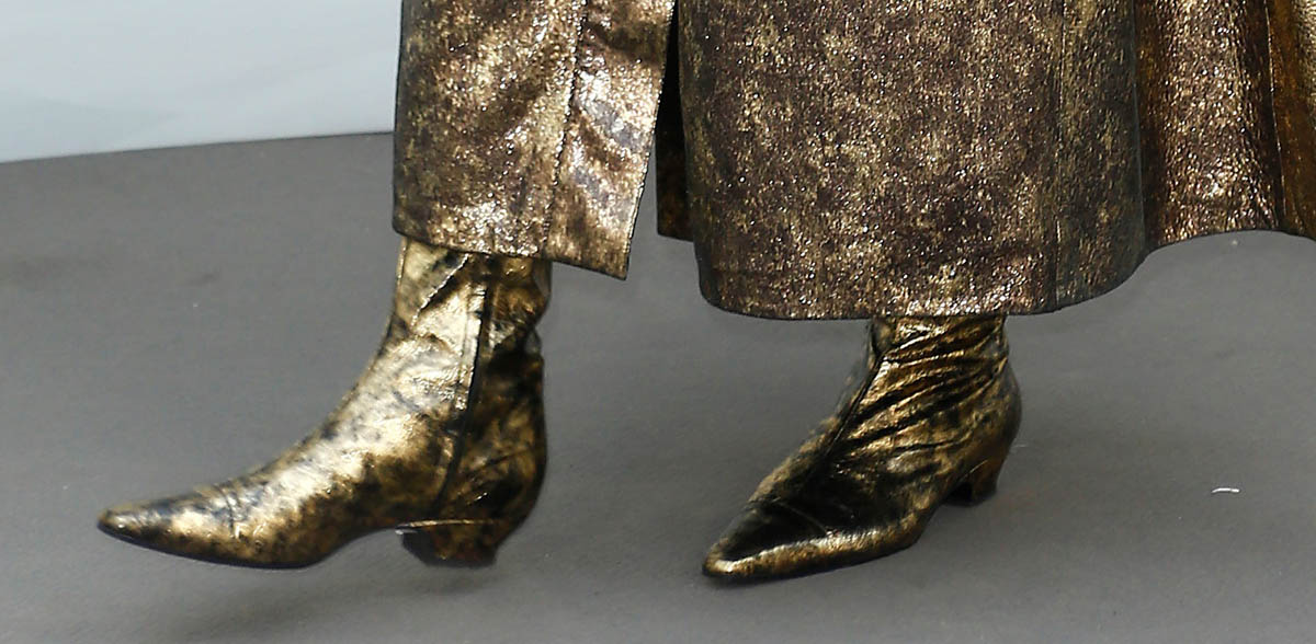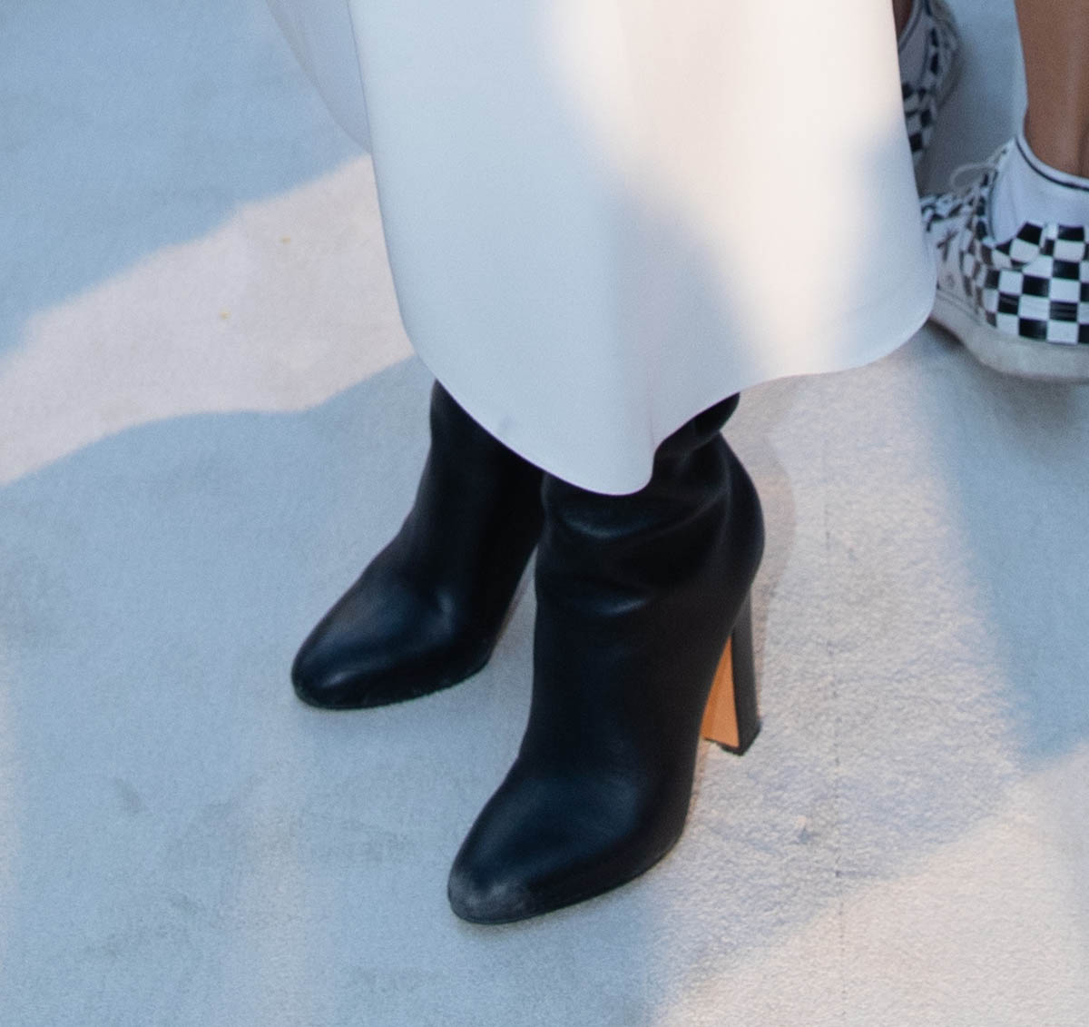 Then, a fitted white signature Chanel boucle sweater dress, accessorised with a beret, and MY GOD those booties. For the Chanel show proper, she wore a plain white tee over a STUNNING gold skirt, with another pair of boss booties, and a gold cross body bag, casual and luxe all at the same time.