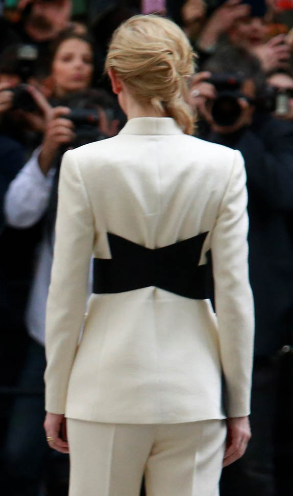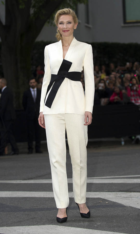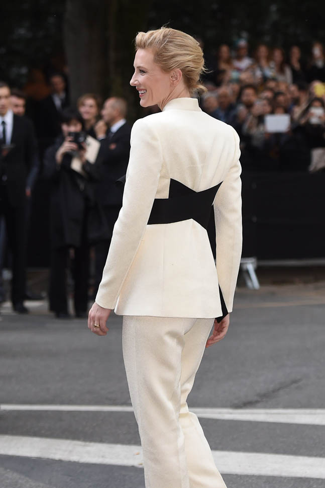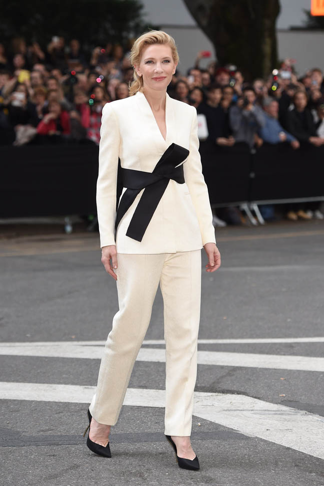 Armani is not my favourite. But Cate Blanchett in Armani makes it better, always. The way she’s wearing this white suit it’s like, of course, a white suit should always have a black sash tied around it, right?
