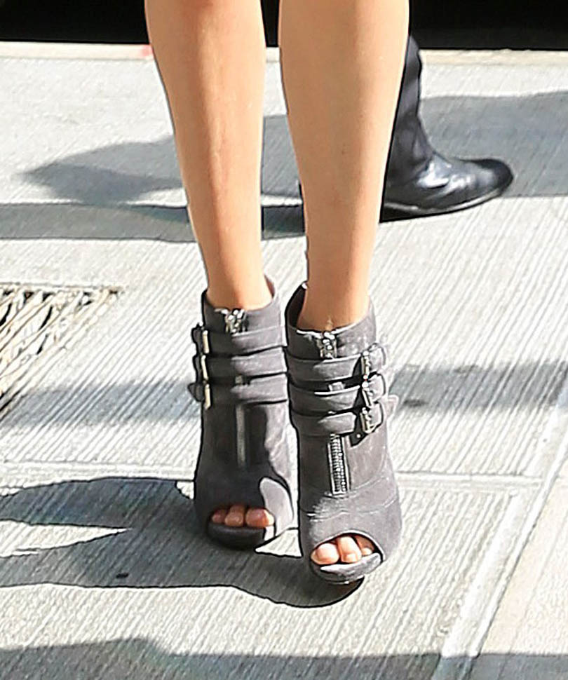 I’ll take all of it. I’ll take the all white knit top and skirt with the flutter sleeves. I’ll take the printed v-neck dress. And I’ll definitely take these grey booties. In fact, I have to have these booties.