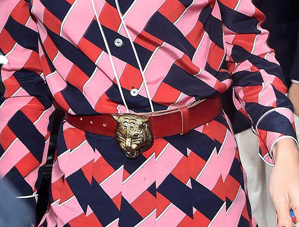 Gucci gave us a lot of great fashion porn at the show yesterday. On the runway and on its celebrity guest list. My favourite front row look came from royalty – Charlotte Casiraghi. So into the length of this dress. The wide collar. The subtle but not quite matched belt. And that 70s print. I’m positive my ma wore a scarf in the 70s in this print. Goes so well with those 70s sandals too.